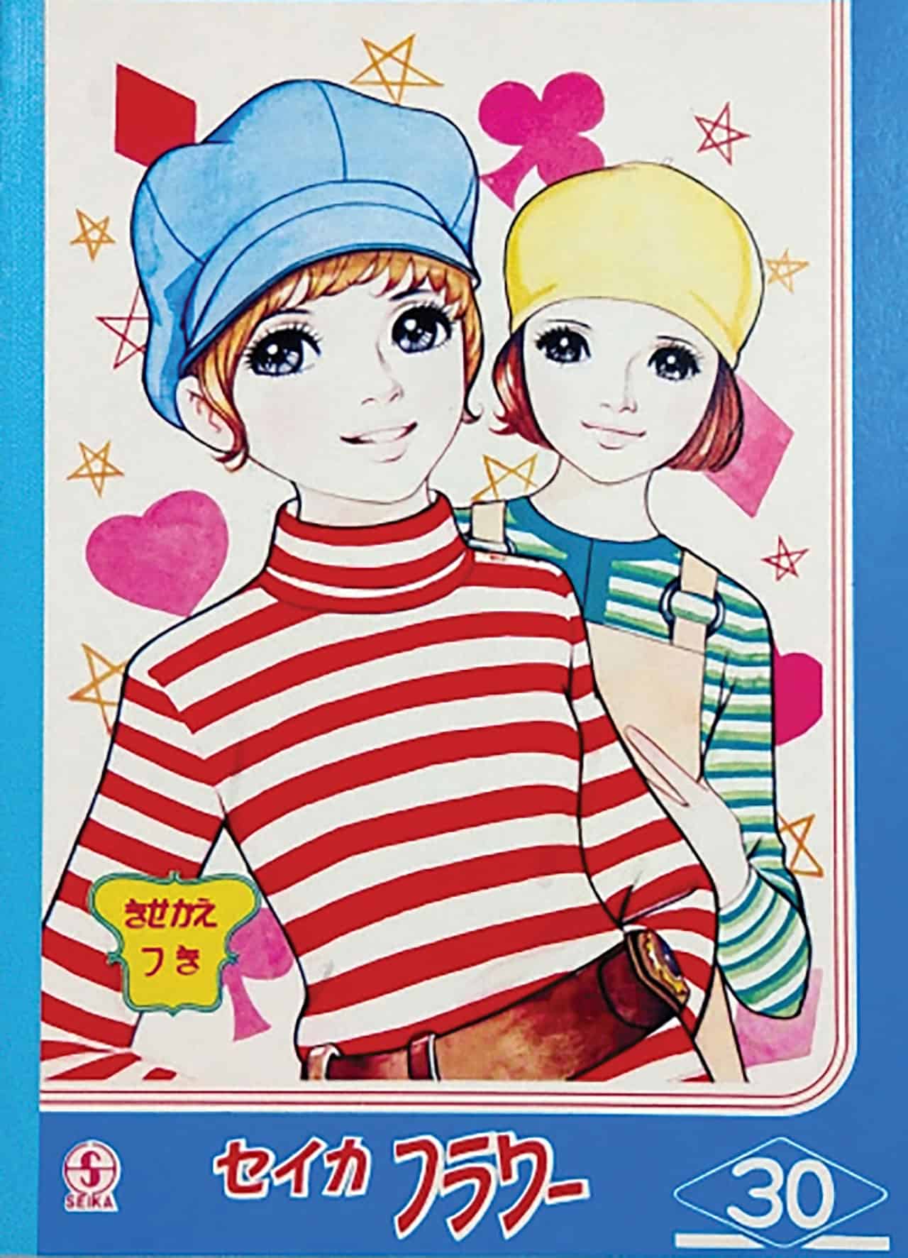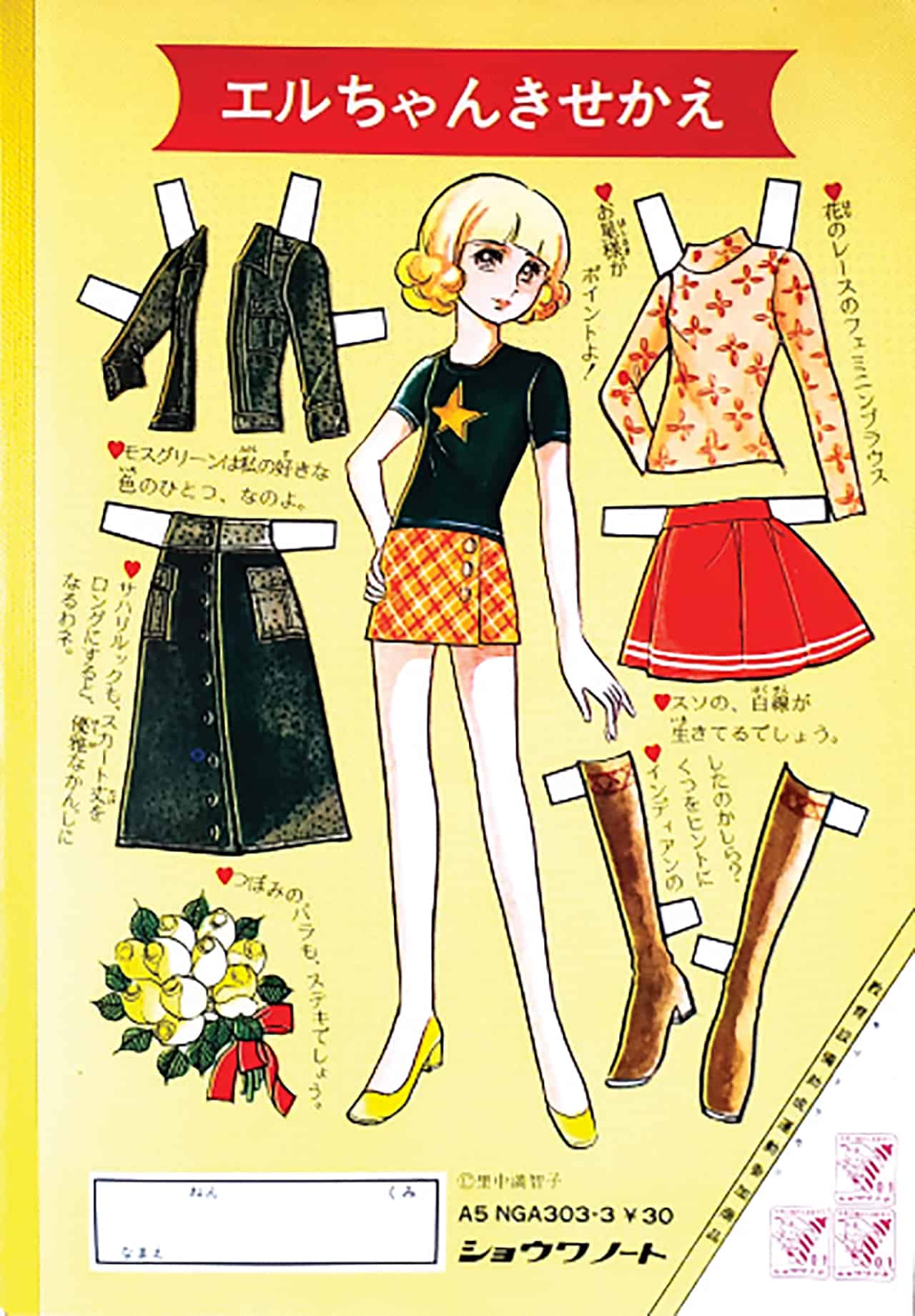 คาแรคเตอร์ที่นำมาทำเป็นปกสมุดโน้ตและมีปกหลังเป็นตุ๊กตากระดาษในยุคนั้น ส่วนใหญ่เป็นผลงานของนักวาดการ์ตูนโชโจะ (Shojo Manga) ที่มีกลุ่มเป้าหมายเป็นเด็กสาววัยละอ่อน ลักษณะเด่นของคาแรคเตอร์คือเด็กสาวดวงตากลมโตเกินขนาดและมีประกายวาววับ (ที่เรียกกันขำๆ ว่า “การ์ตูนตาหวาน”) ซึ่งได้แก่ งานของ Reiko Iizuka, Machiko Satonaka, Yukiko Tani, Miyako Maki, Eiko Hanamura ฯลฯ และก็ยังมีคาแรคเตอร์จากอนิเมะที่ฉายในโทรทัศน์ช่วงนั้น ตุ๊กตากระดาษประเภทที่อยู่คู่กับสมุดโน้ตไม่ได้มีเฉพาะแต่ของเด็กผู้หญิง ของเด็กเล็กกับเด็กผู้ชายก็มีให้ซื้อหามาเล่นได้ไม่ต้องอิจฉากัน