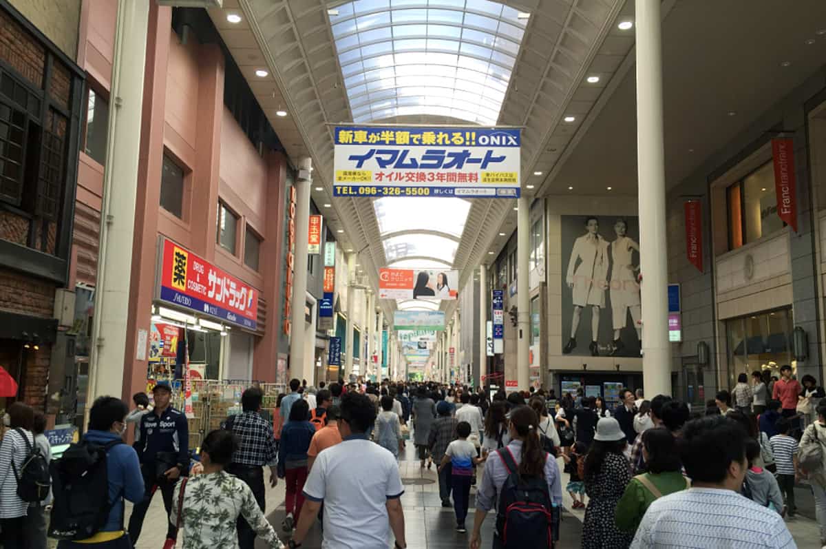 และแล้วก็ถึงเวลาช็อปปิ้ง ใจกลางเมืองคุมาโมโตะมีโชเทนไกชื่อว่า ‘Kamitori’ และ ‘Shimotori’ จุดสังเกตคือมีโดมหลังคาตลอดเส้นทาง ระยะทางรวมยาวประมาณ 2 กิโลเมตร คับคั่งไปด้วยร้านค้าชั้นนำตลอดสองข้างทาง