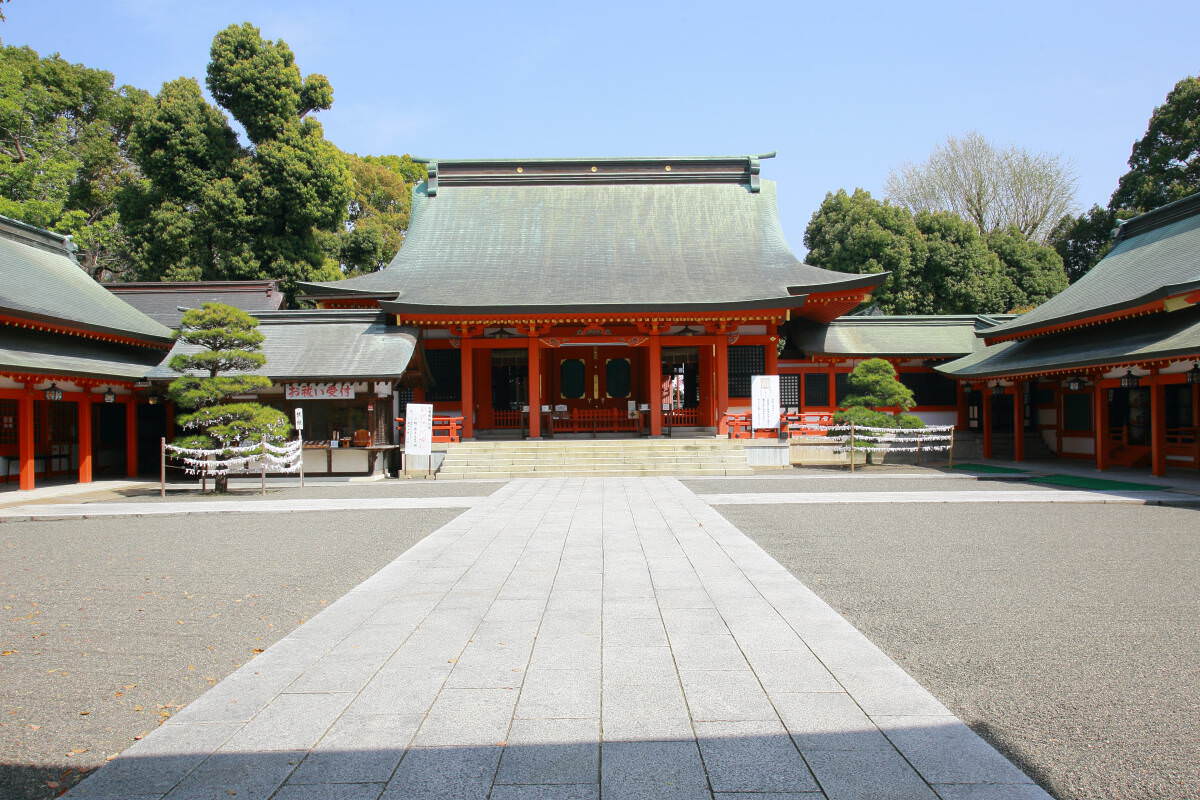 ศาลเจ้าชินโตที่สำคัญอยู่คู่บ้านคู่เมืองคุมาโมโตะมายาวนานกว่า 1,080 ปี! (ด้วยความศักดิ์สิทธิ์ หนุ่มสาวญี่ปุ่นบางคู่ก็พากันมาเก็บภาพแต่งงานที่นี่เช่นกัน)