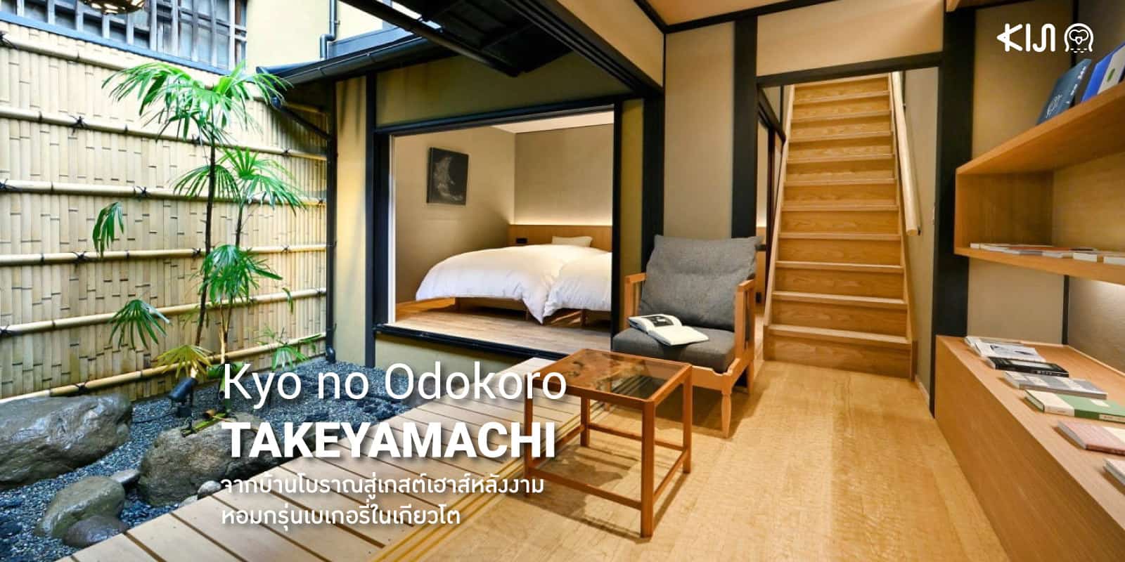 Kyo no Ondokoro TAKEYAMACHI รีโนเวทมาจากบ้านโบราณอายุมากกว่า 130 ปี เป็นส่วนหนึ่งในโครงการ Kyo no Ondokoro ของบริษัทวาโก้ ที่ต้องการอนุรักษ์เกียวมาจิยะหรือห้องแถวไม้โบราณในย่านเกียวโตโดยการเช่าบ้านมาเปิดเป็นเกสต์เฮาส์ หลังจากนั้นเป็นเวลา 10-15 ปี บ้านจะถูกส่งคืนให้กับเจ้าของในสภาพที่ได้รับการปรับปรุงใหม่แต่ยังคงโครงสร้างความงดงามทางสถาปัตยกรรมทั้งภายในและภายนอกไว้ดังเดิม ซึ่งเกสต์เฮาส์หลังใหม่นี้ประกอบไปด้วย 3 สิ่งที่น่าสนใจมากๆ คือ ร้านเบเกอรี่ ห้องสมุด และแกลเลอรี่