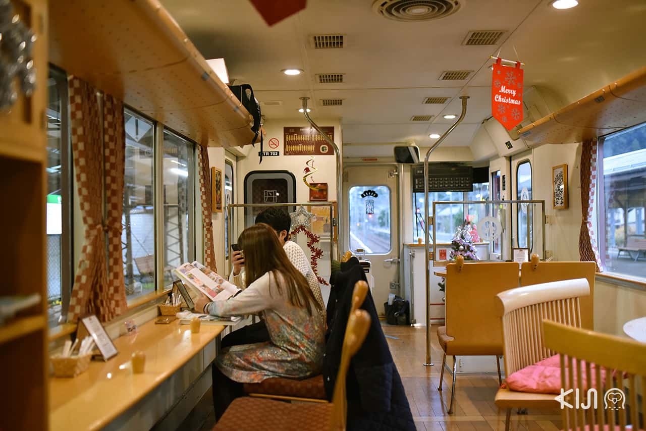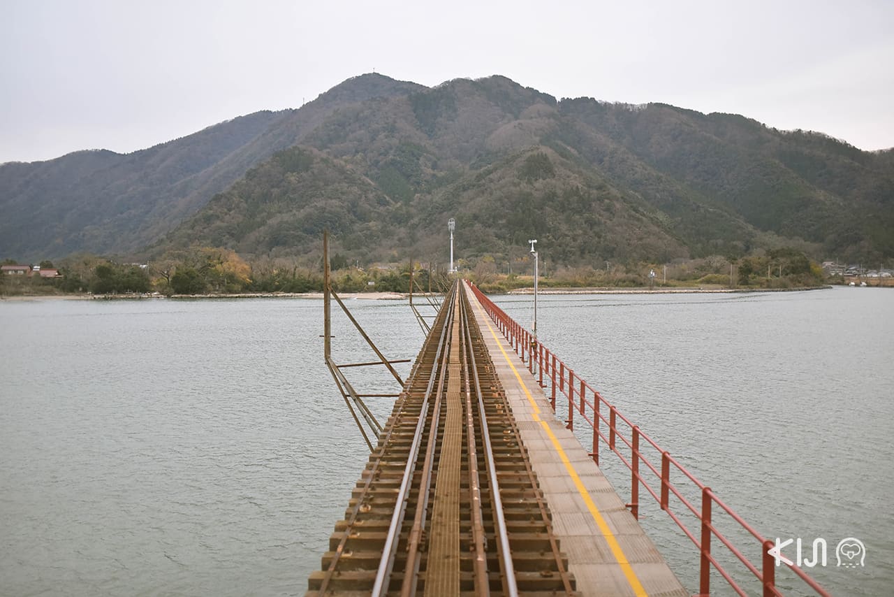 และแวะจอดสนิทริมทะเลหนึ่งครั้งให้ชมวิวได้นานขึ้น พอวิ่งไปได้ครึ่งทางจะผ่านแม่น้ำยูระ (Yura) ซึ่งมีสะพานเหล็กโบราณยาว 550 เมตร รถไฟจะวิ่งชะลอช้าลง มีเสียงดังขลุกขลักต่อเนื่องระหว่างข้ามสะพาน เป็นโมเมนต์ประทับใจที่ได้แอบอิงอยู่กับความวินเทจแบบญี่ปุ่นๆ และทำให้เราเห็นวิธีคิดเท่ๆ ที่ช่วยดึงเอาความงามระหว่างการเดินทางมาเป็นจุดขายเพื่อการท่องเที่ยว และยังช่วยฟื้นฟูความเหงาของทางรถไฟสายเก่าได้อีกด้วย