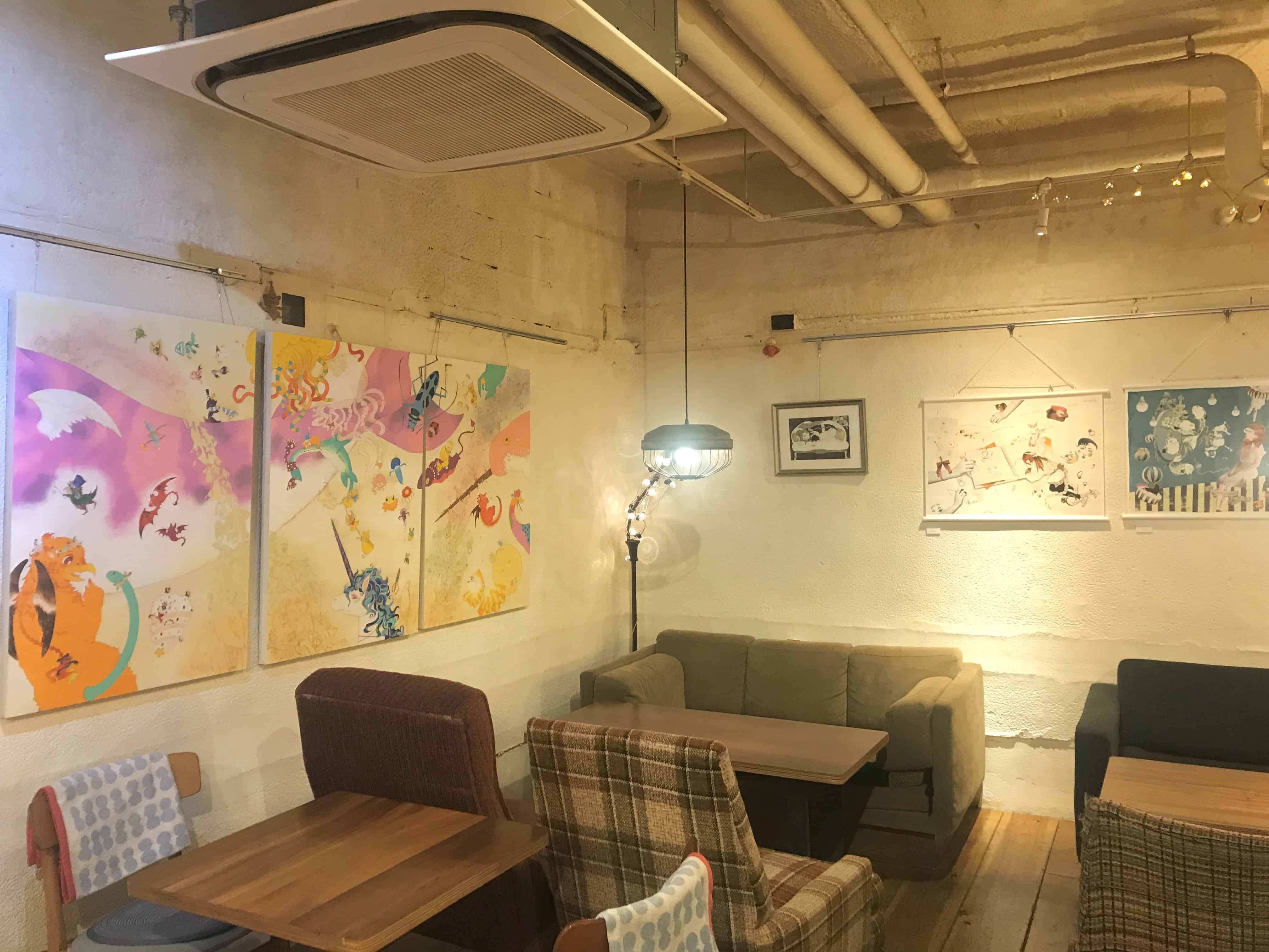ความน่ารักของคาเฟ่แห่งนี้คือนอกจากจะเป็นพื้นที่สำหรับมื้ออาหารแห่งความสุขแล้ว ยังเป็นจุดจัดแสดงผลงานศิลปะของศิลปินชาวญี่ปุ่นซึ่งจะหมุนเวียนเปลี่ยนไปในแต่ละเดือน เสริมสร้างบรรยากาศให้ดูอาร์ตแบบไม่จำเจ