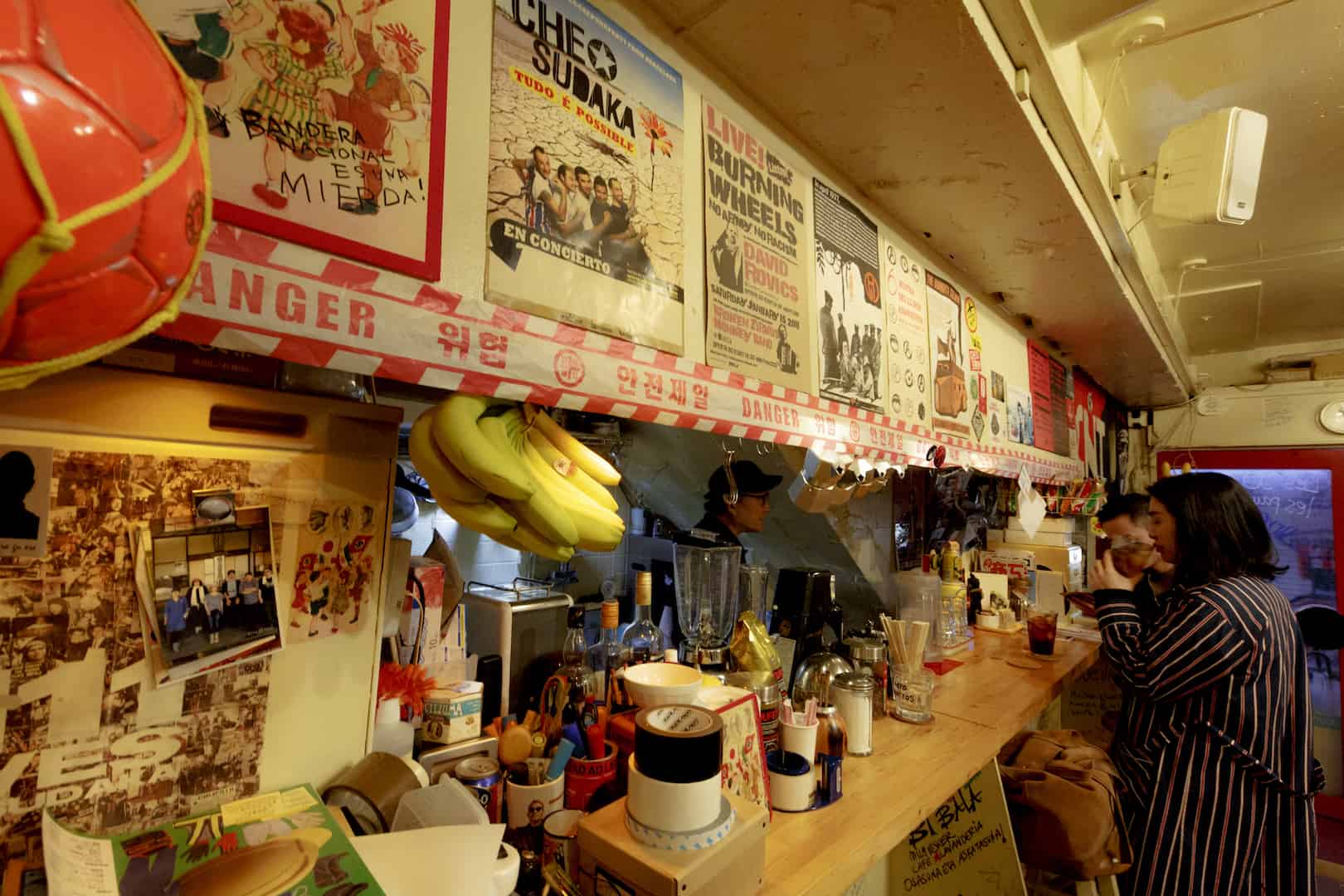 บรรยากาศภายในร้านโดยเด่นด้วยคอนเซ็ปต์ Book Cafe ซึ่งมีคอลเลคชั่นหนังสือและวรรณกรรมเกี่ยวกับเกย์เรียงราย อยู่เต็มชั้นหนังสือกว่า 600 เล่ม บางเล่มนั้นตีพิมพ์มากว่า 100 ปี จนแทบจะหาดูที่อื่นไม่ได้อีกแล้ว ว่ากันว่ามีที่เก็บอยู่ในโกดังอีกกว่าหมื่นเล่ม โดยจะสลับสับเปลี่ยนมาเรียงเรื่อยๆ เรียกได้ว่าราวกับเป็นห้องสมุด LGBT โดยเราสามารถหยิบมาดูได้ตามใจชอบ