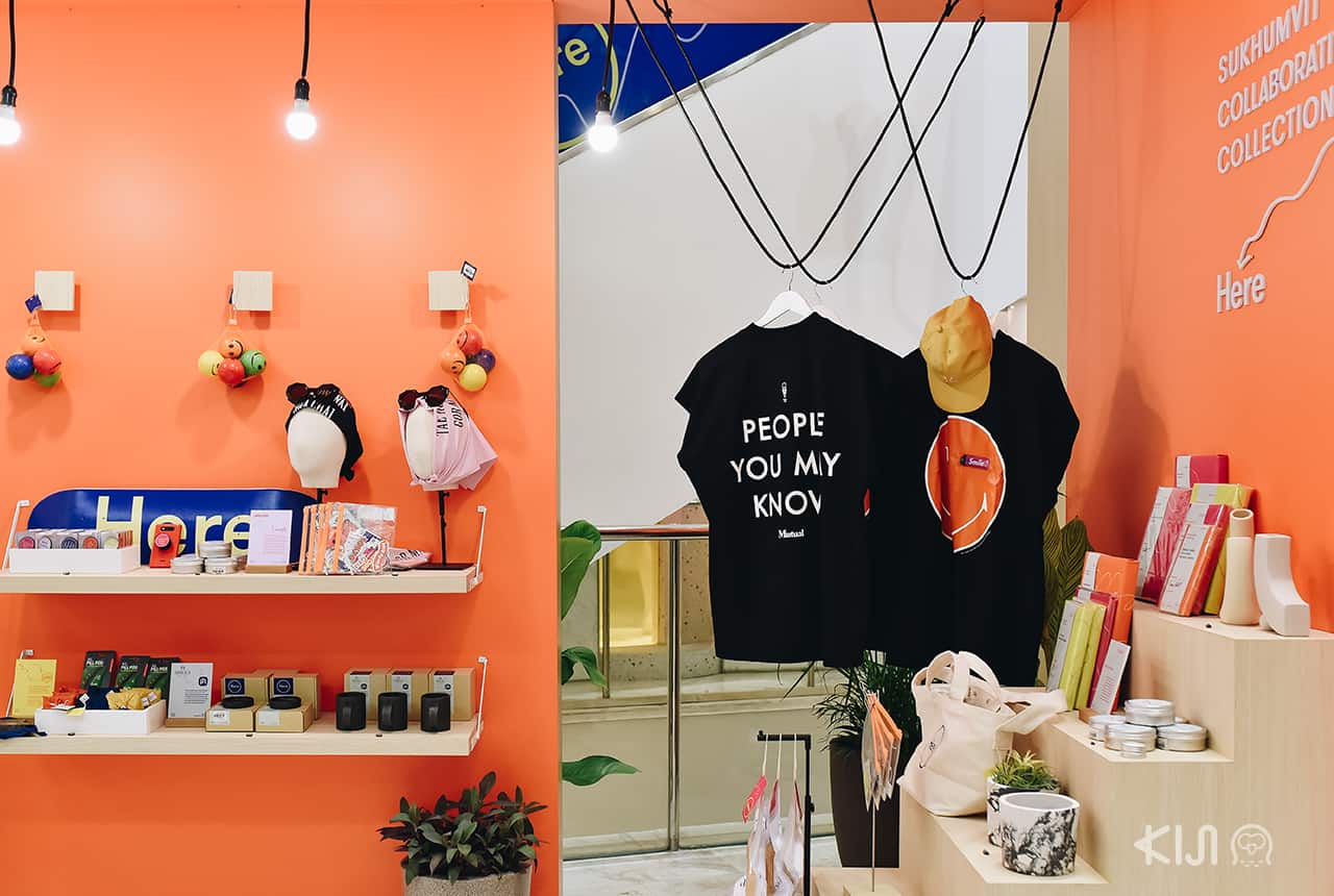 หากจะพูดว่าสินค้าที่วางจำหน่ายภายในงานถือเป็นหนึ่งไฮไลท์สำคัญเลยก็ไม่ผิดอะไร เพราะสินค้าส่วนใหญ่ถูกออกแบบโดยกลุ่มคนสร้างสรรค์ ทั้งผู้ประกอบการในย่านสุขุมวิทกว่า 30 แห่งได้จับมือกันสร้างสรรค์ไอเท็มพิเศษ ซึ่งแต่ละชิ้นได้แรงบันดาลใจจากไลฟ์สไตล์ของคนสุขุมวิท ที่พิเศษไปกว่านั้นคือสินค้าเหล่านี้หาซื้อได้ที่ Here Concept Store และร้านในย่านสุขุมวิทที่ร่วมมือเท่านั้น นับเป็นการเชื่อมสัมพันธ์ของคนต่างสาขาอาชีพได้อย่างลงตัวและสื่อถึงแพสชั่นของคนสุขุมวิทได้เป็นอย่างดี เราขอเล่าถึงไอเท็มพิเศษบางอย่างที่เราชอบและคิดว่าคุณก็น่าจะชอบเหมือนกัน อาทิ