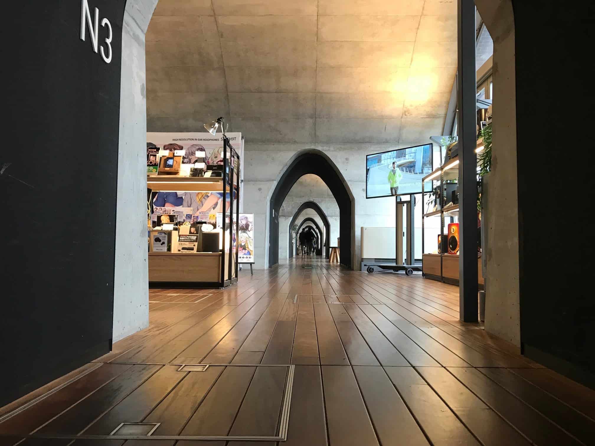 เมื่อเข้ามาข้างใน ทางเดินสู่พื้นที่แต่ละห้องถูกแบ่งด้วยเพดานทรงโค้งมนยาวจนสุดลูกตา ให้กลิ่นอายเหมือนสถาปัตยกรรมแบบยุโรป อีกทั้งมีรายละเอียดการตกแต่งแนว Loft ดิบๆ กำแพงเป็นแบบคอนกรีตผสมผสานกันอยู่ ความแตกต่างของสองสิ่งแต่กลับลงตัว ทำให้บรรยากาศภายในดูมีเสน่ห์และหาไม่ได้ตามศูนย์การค้าทั่วไปแน่นอน