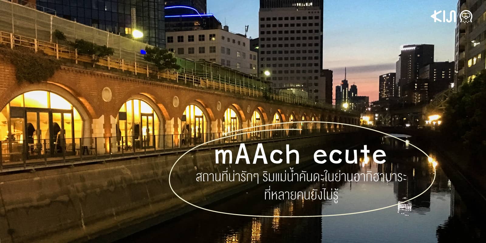 โดยปกติแล้วจุดที่ผู้คนและนักท่องเที่ยวกระจุกตัวในย่านอากิฮาบาระคือบริเวณรอบๆ โซนตึกแดง SEGA และ Yodobashi Camera เราขอให้คุณลองเดินลงมาฝั่งทิศใต้อีกหน่อย ข้ามสะพานมันเซ (Mansei Bridge) ก็จะพบกับโครงการศูนย์การค้าขนาดกระทัดรัดริมแม่น้ำคันดะ (Kanda River) ที่มีชื่อเป็นเอกลักษณ์ว่า “mAAch ecute”「マーチ・エキュート」(อ่านเป็นภาษาญี่ปุ่นแบบน่ารักๆ ได้ว่า: มาจิ เอคิวโตะ) ดูสิครับแค่ฟอนต์และการตั้งชื่อก็น่าสนใจแล้ว ฮ่าๆ