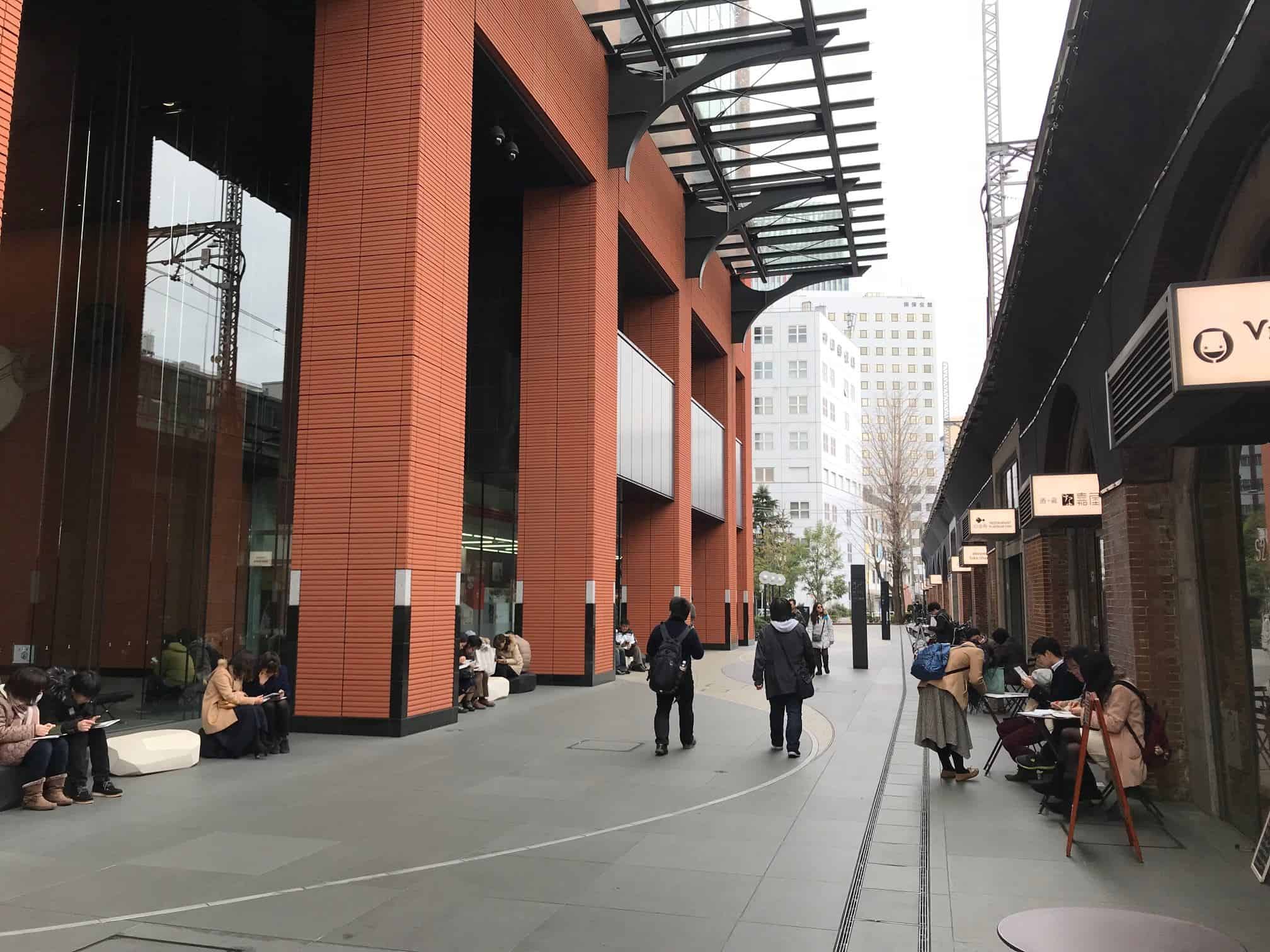 ความคลาสสิกอีกอย่างหนึ่งของ มาจิ เอคิวโตะ คือตั้งอยู่ใต้รางรถไฟลอยฟ้า (บางส่วนเลิกใช้แล้ว) และสถาปัตย์ฯ ด้านนอกสร้างด้วยอิฐแดงแลดูเก่าๆ เข้ากับกระจกสีหม่น ทำให้ภาพรวมออกมาดูกลมกลืนไปกับสภาพแวดล้อม ใครที่ไม่ได้สังเกตอาจบอกว่าตึกนี้เป็นเพียงส่วนหนึ่งของรางรถไฟเก่าๆ ธรรมดา จึงไม่แปลกเลยที่บ่อยครั้งมันจะถูกมองข้ามไป