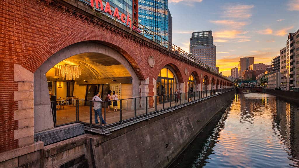 โดยเฉพาะยามพระอาทิตย์ตกดิน เราขอแนะนำให้คุณเดินไปยืนบนสะพาน Mansei Bridge แล้วมองย้อนกลับมาที่ มาจิ เอคิวโตะ แสงอาทิตย์ฉาบย้อมอิฐสีแดงและแม่น้ำคันดะ มีตึกระฟ้าเป็นฉากหลัง ตรงนี้คือหนึ่งในจุดถ่ายรูปที่สวยมากครับ