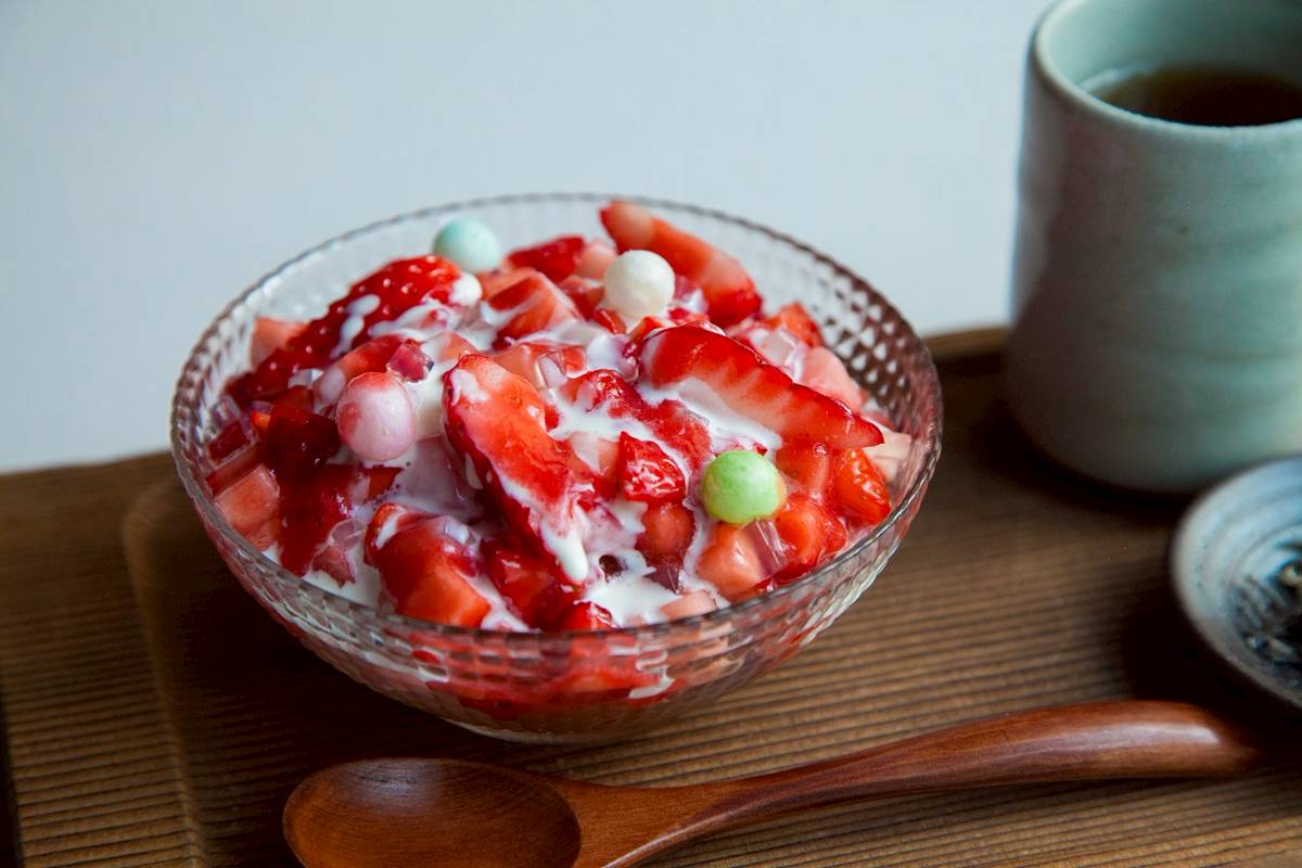 ส่วนอันมิตสึแบบใส่ผลไม้ตามฤดูกาล นอกจากตัวผลไม้เชื่อมที่ใส่แน่นชาม ยังราดด้วยซอสชุ่มฉ่ำ หรือถ้าใครอยากลองเปลี่ยนรสชาติ ก็สามารถเติมครีมสดบราวน์ชูการ์ได้เหมือนกัน ซึ่งจะทำให้ใน 1 ถ้วยจะมีถึง 4 รสชาติที่แตกต่างกัน และรสชาติจะเข้มข้นขึ้นอีกเมื่อราดซอสผลไม้เพิ่ม เป็นเมนูที่เชฟได้คิดค้นขึ้นมาเอง และน่าลิ้มลองเป็นอย่างมาก