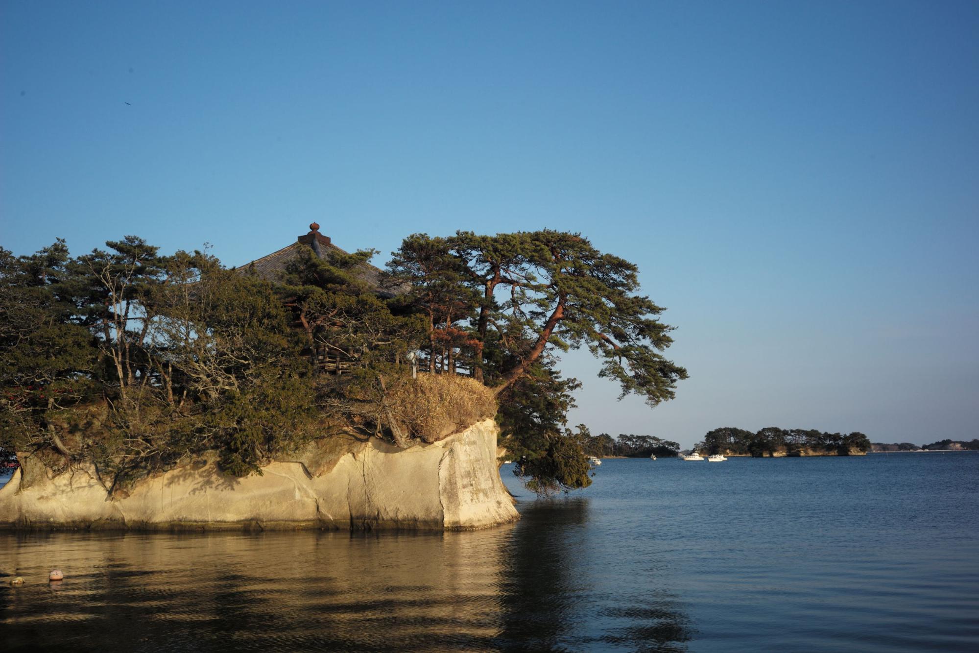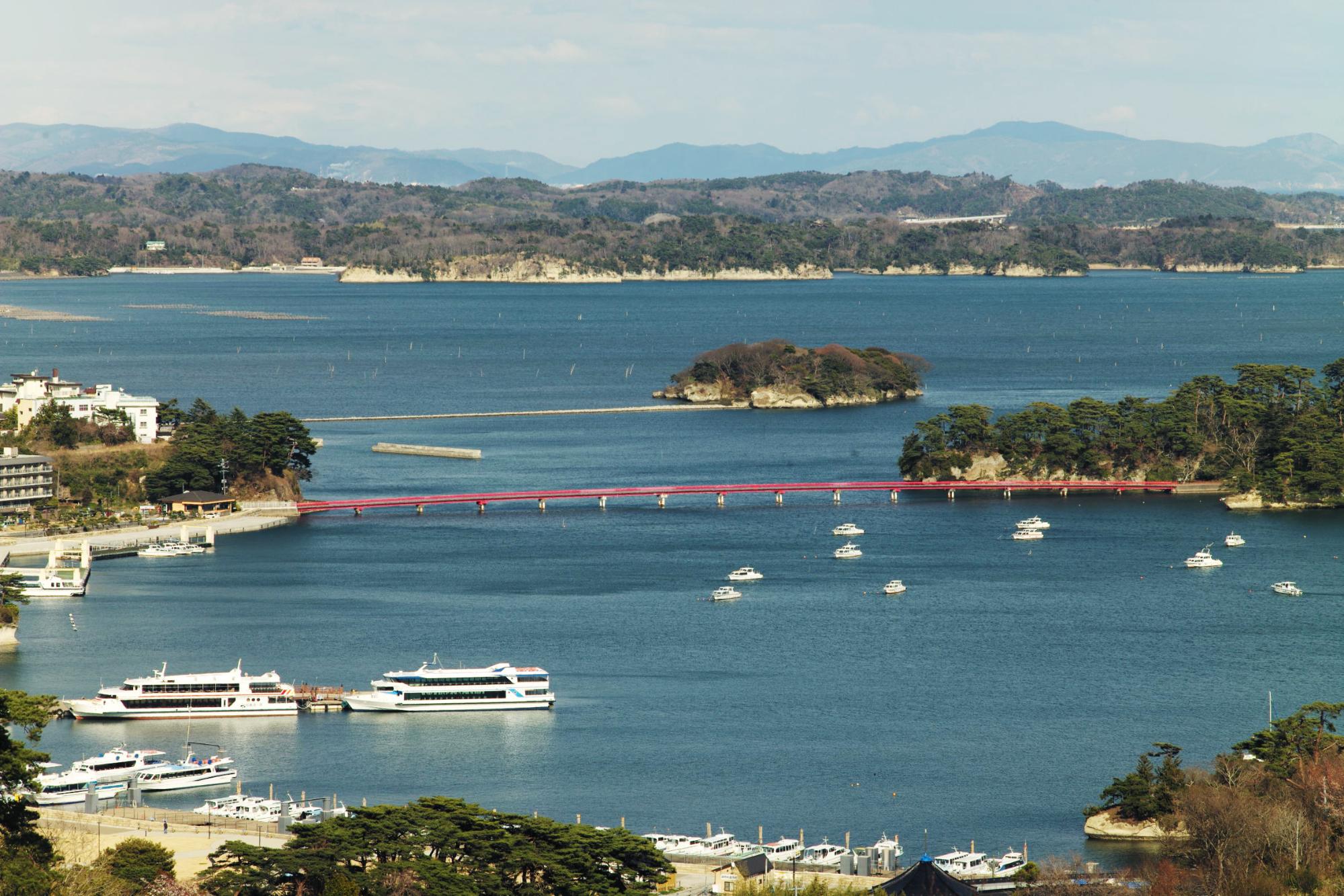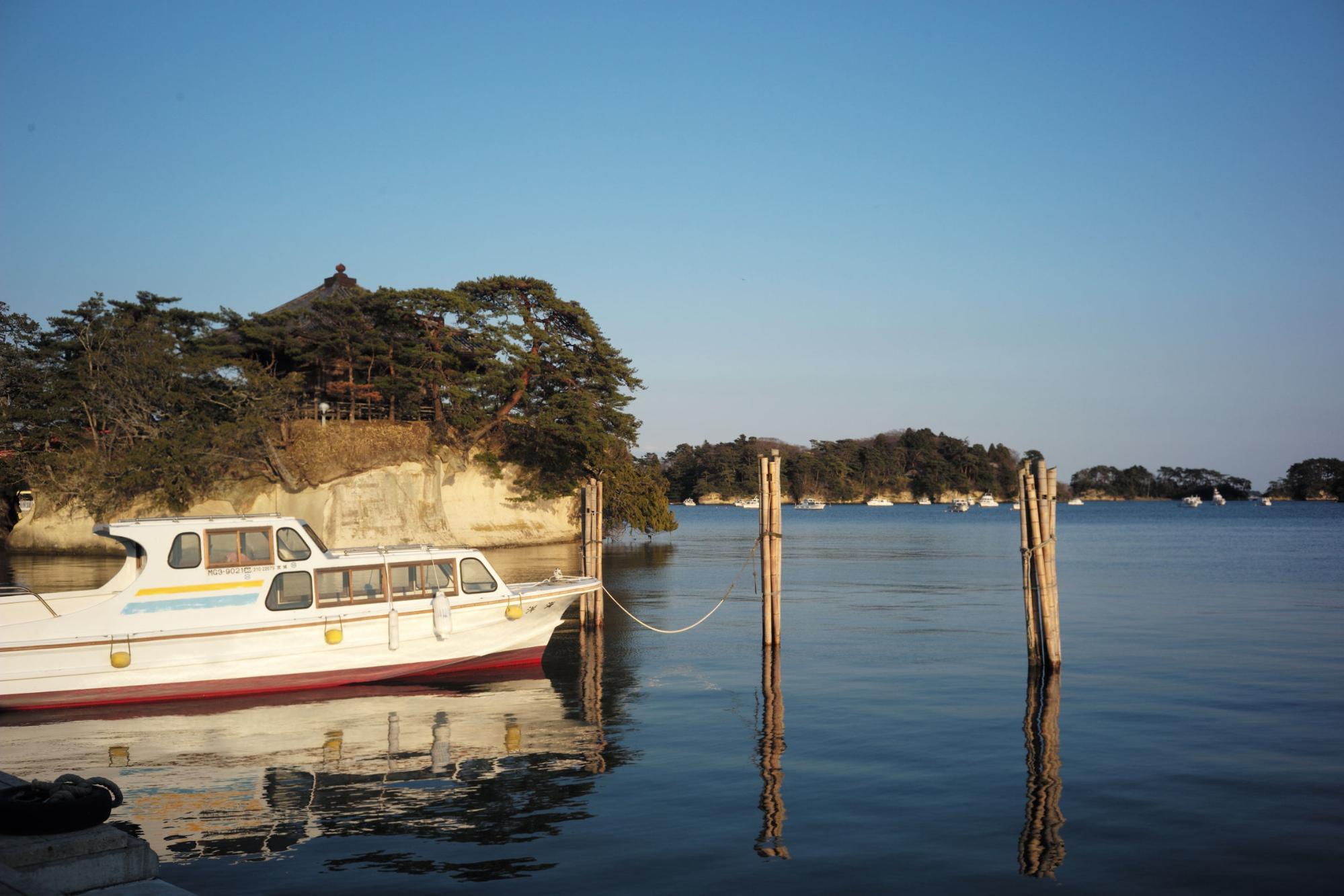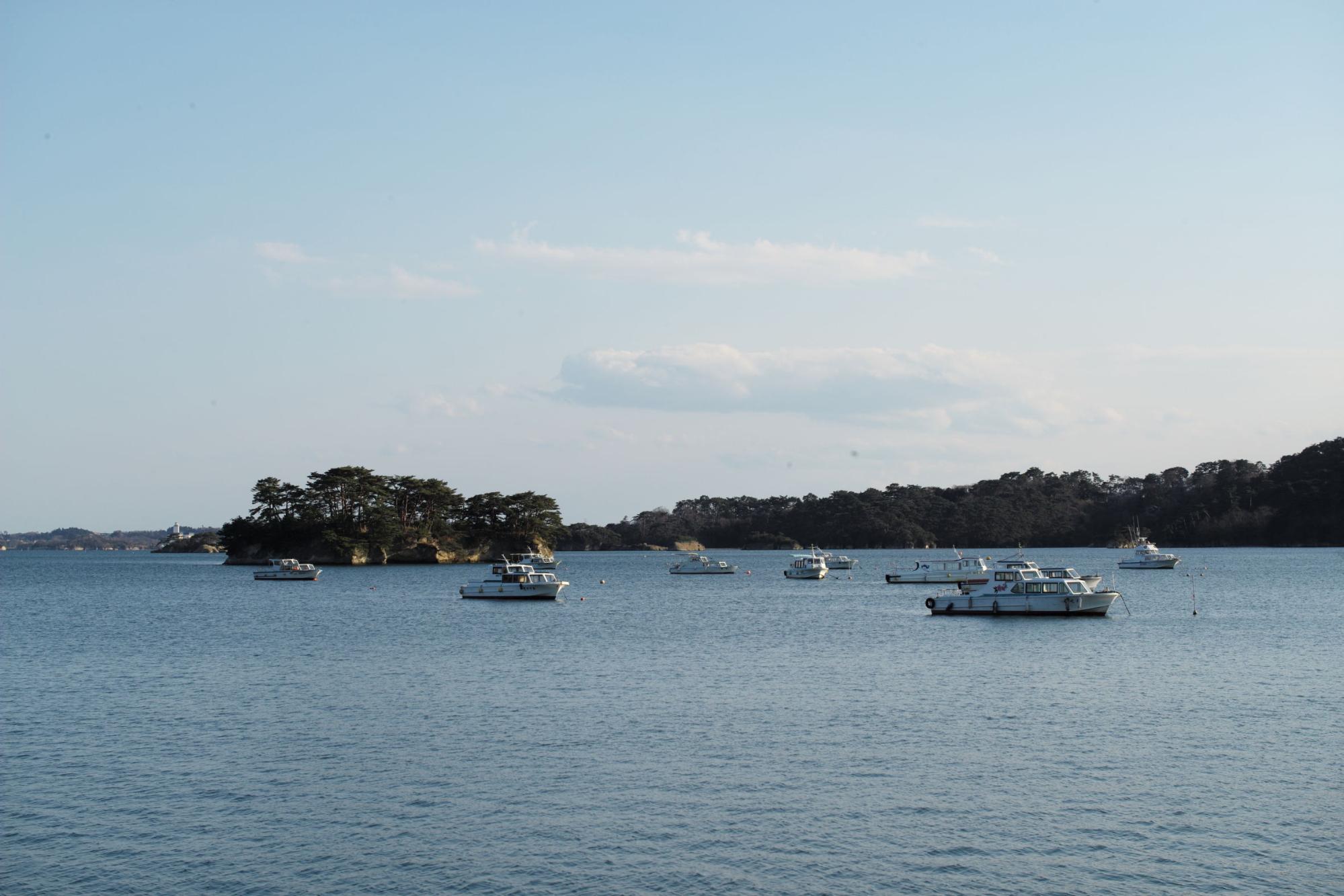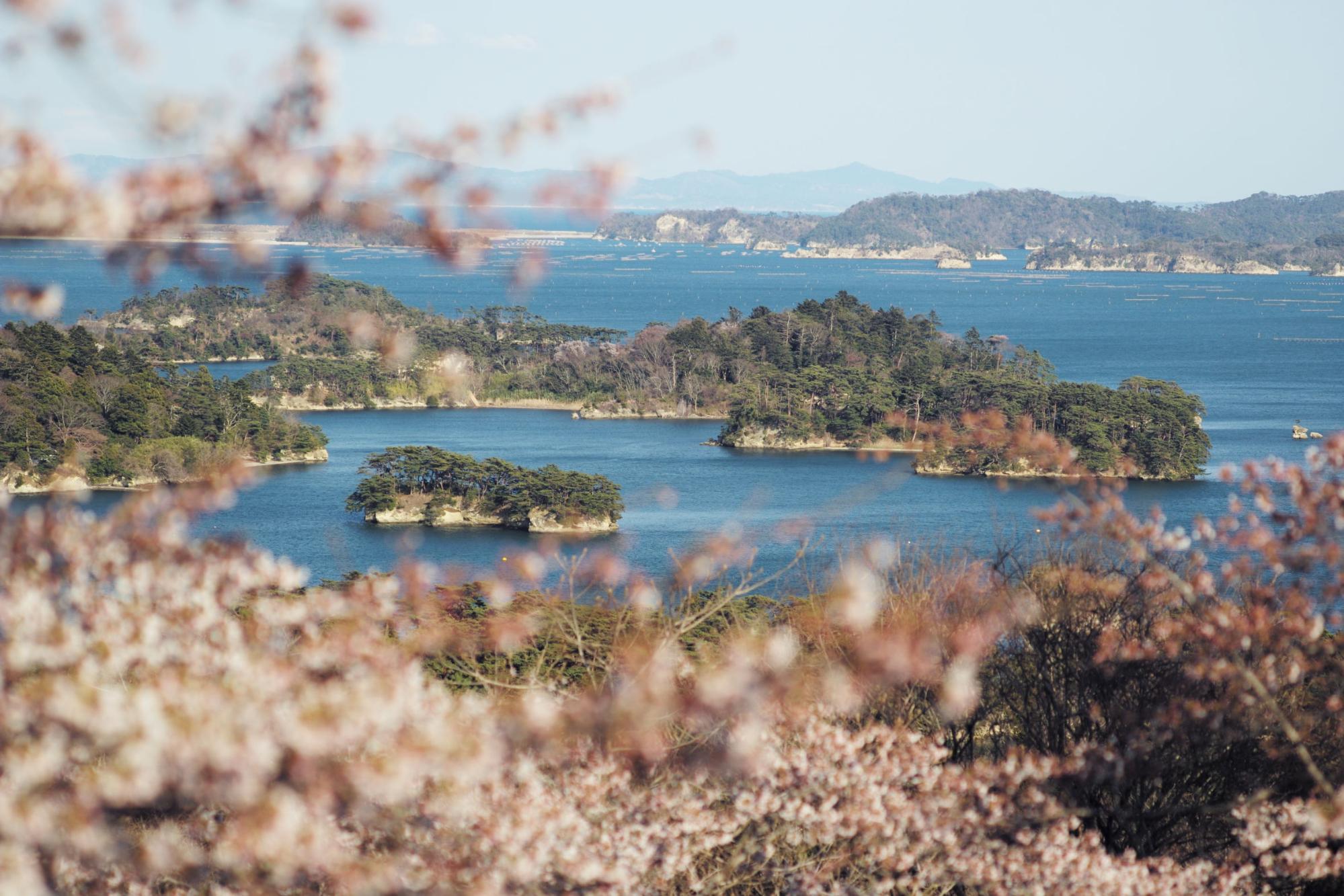 จริงๆ แล้ว การล่องเรือชมเกาะถือเป็นหนึ่งในกิจกรรมที่ไม่ควรพลาดเมื่อมาที่นี่ แม้แต่กวีชื่อดังของญี่ปุ่นอย่างมัตสึโอะ บะโชยังแต่งกลอนนิราศชื่นชมความงามของทิวทัศน์ที่แปลกตาอย่างน่าประทับใจ แต่น่าเสียดายที่เราไปช่วงที่เขาปิดบริการ จึงได้แต่มองจากชายฝั่ง ทั้งนี้ทั้งนั้นในเมื่อหมุดหมายหลักของทริปเราครั้งนี้คือซากุระ แน่นอนว่าที่นี่มีจุดชมซากุระที่สวยสุดๆ เข้ากับฟ้าใส ทะเลสวย และต้นไม้เขียวขจีแน่นอน