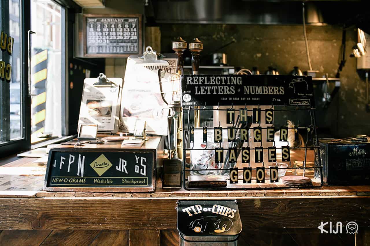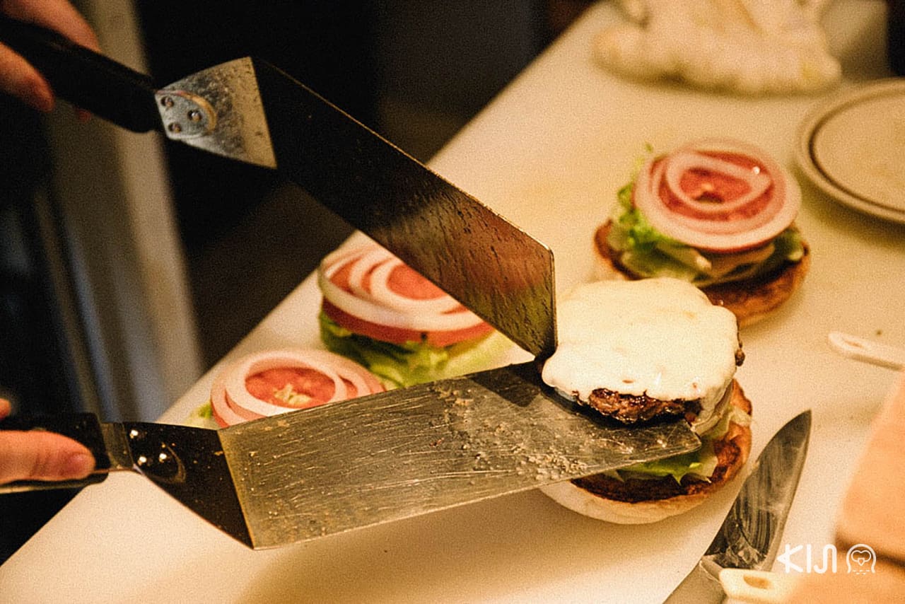 เมื่อเดินเข้าไปร้านเราจะได้พบกับเจ้าของร้านที่ควบตำแหน่งพ่อครัวด้วย เป็นหนุ่มญี่ปุ่นสุดเท่ภายใต้ผ้ากันเปื้อนแคนวาสผืนเก่ง เขาเล่าถึงความชื่นชอบที่มีต่อเบอร์เกอร์จนถึงขั้นเดินทางไปอเมริกาเพื่อตระเวนชิมเบอร์เกอร์มากมายหลายสูตร ก่อนจะกลับมาเปิดร้านแห่งนี้ ด้วยการดัดแปลงรสชาติและวัตถุดิบให้เข้ากับคนญี่ปุ่น ออกมาเป็นเบอร์เกอร์คุณภาพดีที่มีส่วนผสมพอดีระหว่างเนื้อกับขนมปัง และให้รสชาตินุ่มเข้มกลมกล่อมไม่แพ้ฝั่งอเมริกา