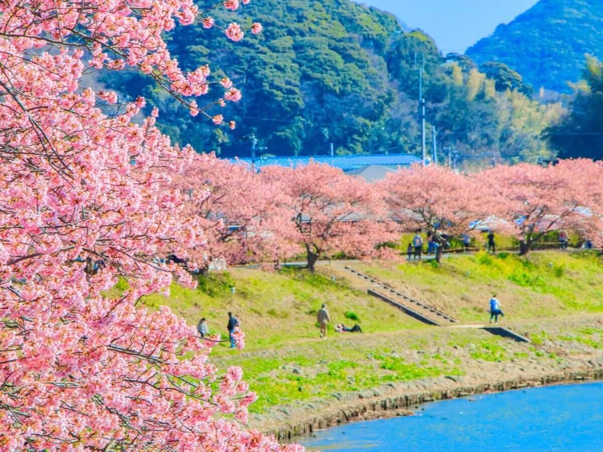 ที่งานนี้จะมีดอกซากุระอยู่หลากหลายสายพันธุ์ให้ได้เชยชมตลอดทาง ซึ่งหนึ่งในนั้นก็มี ซากุระสายพันธุ์คาวาสึ ซากุระ (Kawazu Sakura / Kawazu-zakura) ที่มีจำนวนมากถึง 800 ต้น เป็นซากุระที่บานไว และมีขนาดของกลีบดอกค่อนข้างที่จะฟูใหญ่ อีกทั้งยังมีสีชมพูเข้ม ซึ่งแตกต่างไปจากสายพันธุ์อื่นๆ ที่มักจะมีสีอ่อนนั่นเอง