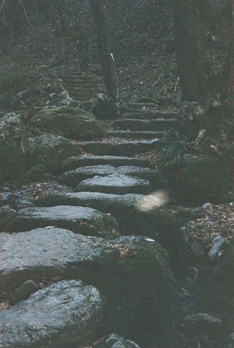 ฉันยังคงได้ยินเสียง “คนนิจิวะ” “โด๊ะโกะ คะระ คิตะ โหน?” และ “คิ โอ๊ะ สึเกะเตะ เนะ” ตลอดทางเดิน กำแพงภาษาและกำแพงใจทลายลงหมดสิ้น สองขาพาร่างที่เหงื่อแตกเต็มหัวไปตามทางที่ทอดยาว ทั้งร่มรื่น หนาวเย็น เต็มไปด้วยหินขรุขระ (ตกเขามีหวังหายสาบสูญแน่ๆ) บนทางลาดขึ้นสลับลงและเงียบสงบมาก