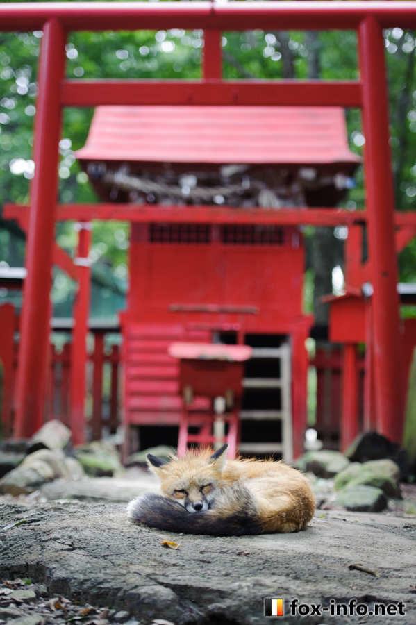 นอกจากนั้นบนยอดเขาเราจะสังเกตุเห็นศาลเทพเจ้าจิ้งจอกอินาริสีแดงเด่นเป็นสง่าอยู่ด้วย ซึ่งสมกับเป็นหมู่บ้านสุนัขจิ้งจอก เพราะเทพอินาริตัวแทนของความอุดมสมบูรณ์มักจะมีจิ้งจอกเป็นสัตว์คู่กาย ทำให้ข้างๆ กันมีรูปปั้นสุนัขจิ้งจอกโคมะอินุ (ทูตของเทพเจ้า) ด้วย