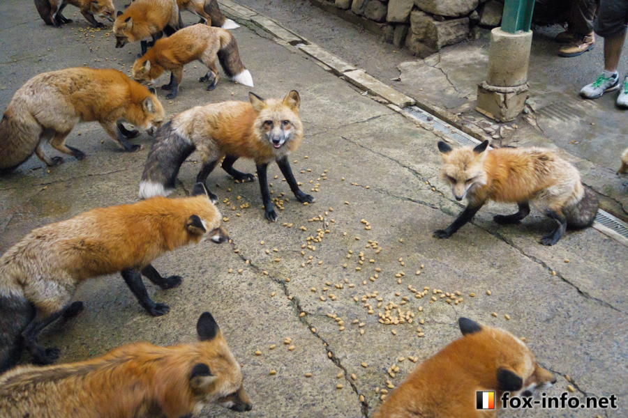 - อย่าออกไปนอกบริเวณทางเข้า และอย่านั่งบนม้านั่งหินที่สงวนไว้สำหรับสุนัขจิ้งจอก แต่หากจำเป็น สามารถพักผ่อนบนม้านั่งในบริเวณให้อาหารได้
