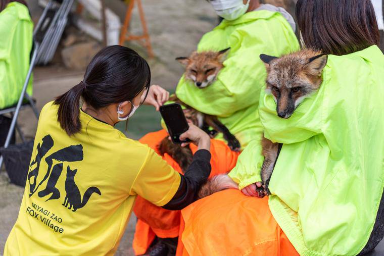 หลังจากสวมเสื้อคลุมป้องกันรอยขีดข่วนที่ทางเจ้าหน้าที่เตรียมไว้ให้แล้ว เราก็สามารถเข้ามาอุ้มสุนัขจิ้งจอกแสนน่ารักและสัมผัสตัวอันอบอุ่นของน้อง ๆ ได้ เรียกได้เลยว่าเป็นประสบการณ์ที่หาได้ยากมาก อีกทั้งในช่วงฤดูใบไม้ผลิไปจนถึงต้นฤดูร้อน ตั้งแต่เดือนพฤษภาคม-เดือนมิถุนายนของทุกปี เรายังสามารถเข้ามาสัมผัสประสบการณ์อุ้มลูกสุนัขจิ้งจอกเกิดใหม่ได้ด้วยนะ