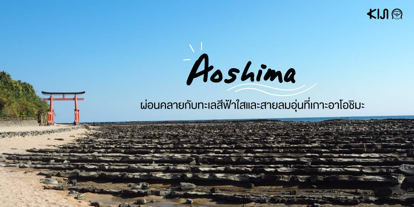 เกาะอาโอชิมะ เป็นเกาะขนาดเล็กที่ตั้งอยู่ทางตะวันออกของจังหวัดมิยาซากิ แม้จะมีพื้นที่รอบบริเวณเกาะไม่มากนัก แต่ก็เป็นจุดมุ่งหมายของการท่องเที่ยวที่ได้รับความนิยม เพราะนอกจากจะมีสถานที่น่ารักๆ ก็ยังสามารถเดินชายหาด รับลมทะเล กินของอร่อย และมีกิจกรรมให้ทำหลายอย่าง และถึงจะได้ชื่อว่าเป็นเกาะ แต่สามารถเดินทางด้วยรถ รถไฟและเดินเท้าจากสถานีรถไฟอาโอชิมะ (Aoshima Station) ไปยังเกาะได้ สะดวกสบายทีเดียว