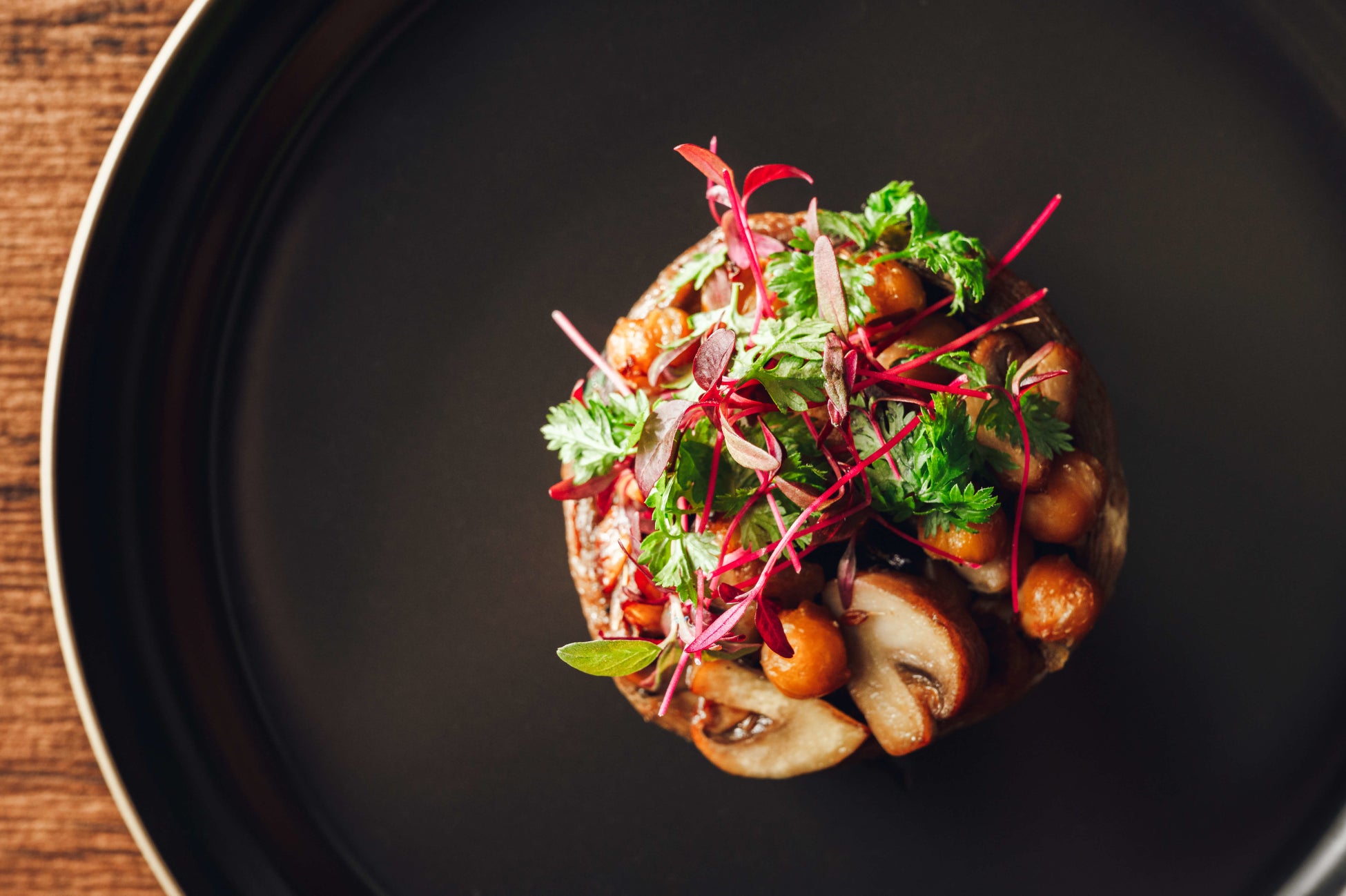 หน้าที่สำคัญของอาหารเมนูเห็ดแชมปิญองคือการบอกใบ้ให้รู้ว่า เห็ดไม่ได้เป็นได้แค่ท็อปปิ้งในอาหาร แต่สามารถเป็นวัตถุดิบหลักได้เช่นกัน ที่นี่จะใช้เห็ดแชมปิญองสด ส่งตรงจากเมืองคาโตริ (Katori) จังหวัดชิบะทุกวัน รังสรรค์เมนูด้วยกรรมวิธีที่หลากหลาย จากหลายชนชาติ คอร์สอาหารในช่วงนี้ จะมีให้เลือก 2 แบบ คือคอร์สอาหารวีแกน (5,800 เยน) ที่ไม่ใช้ส่วนผสมใดๆ จากสัตว์ และเมนูพิเศษ (5,800 เยน) ที่อาหารจานหลักจะทำมาจากเนื้อสัตว์ ทำให้ได้รับความนิยมแบบปากต่อปาก ในฐานะร้านอาหารที่ทั้งชาววีแกนและผู้คนทั่วไปสามารถเพลิดเพลินกับมื้ออาหารสุดพิเศษได้
