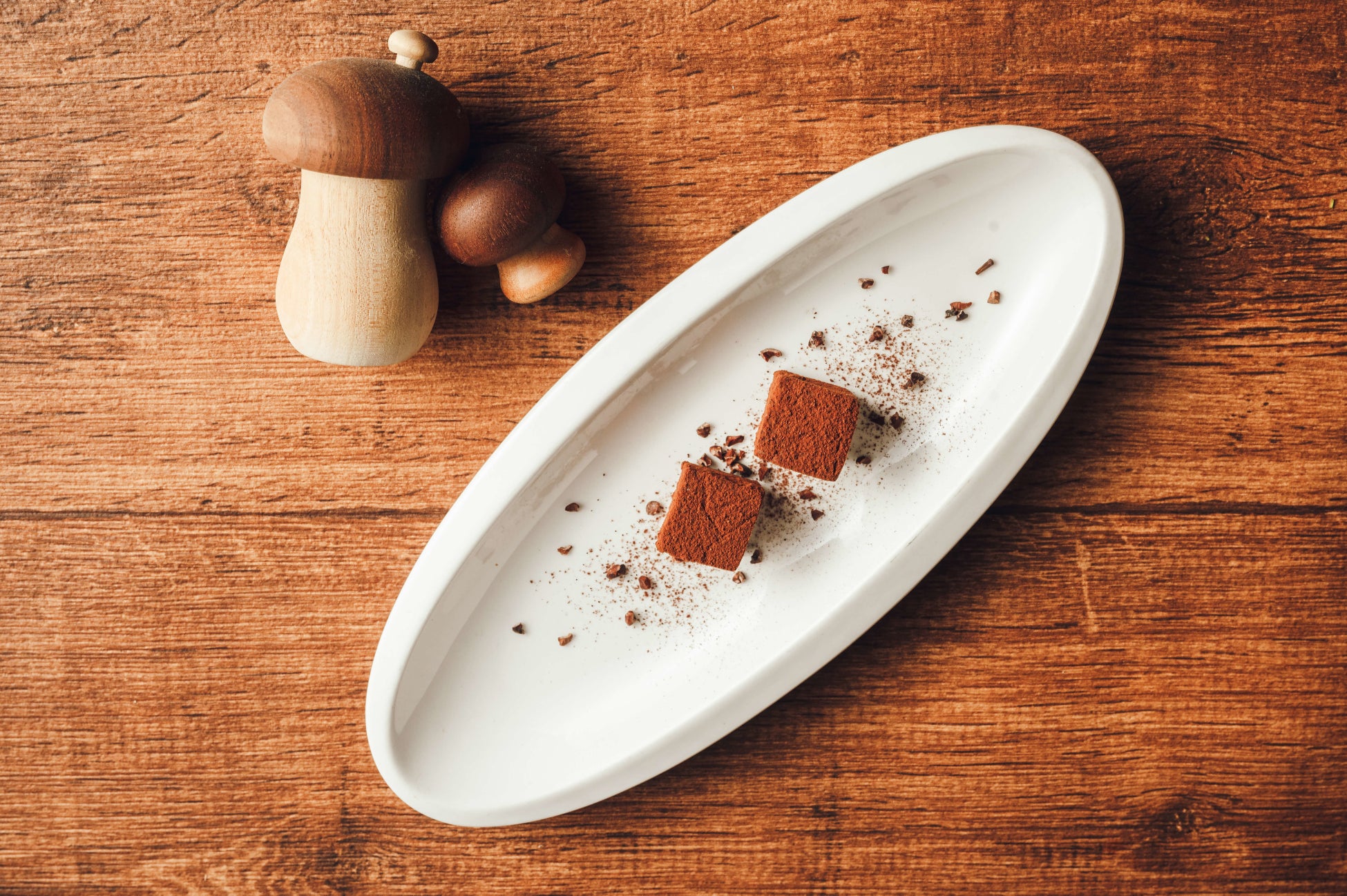 เมนูที่น่าสนใจเมนูสุดท้ายที่อยากจะแนะนำคือ เมนูของหวานอย่าง นามะช็อกโกแลตผสมเห็ดแชมปิญอง เพิ่มความอร่อยและความเข้มข้นของนามะช็อกโกแลต ด้วยแป้งจากเห็ดแชมปิญอง อร่อยละมุนลิ้นละลายในปาก