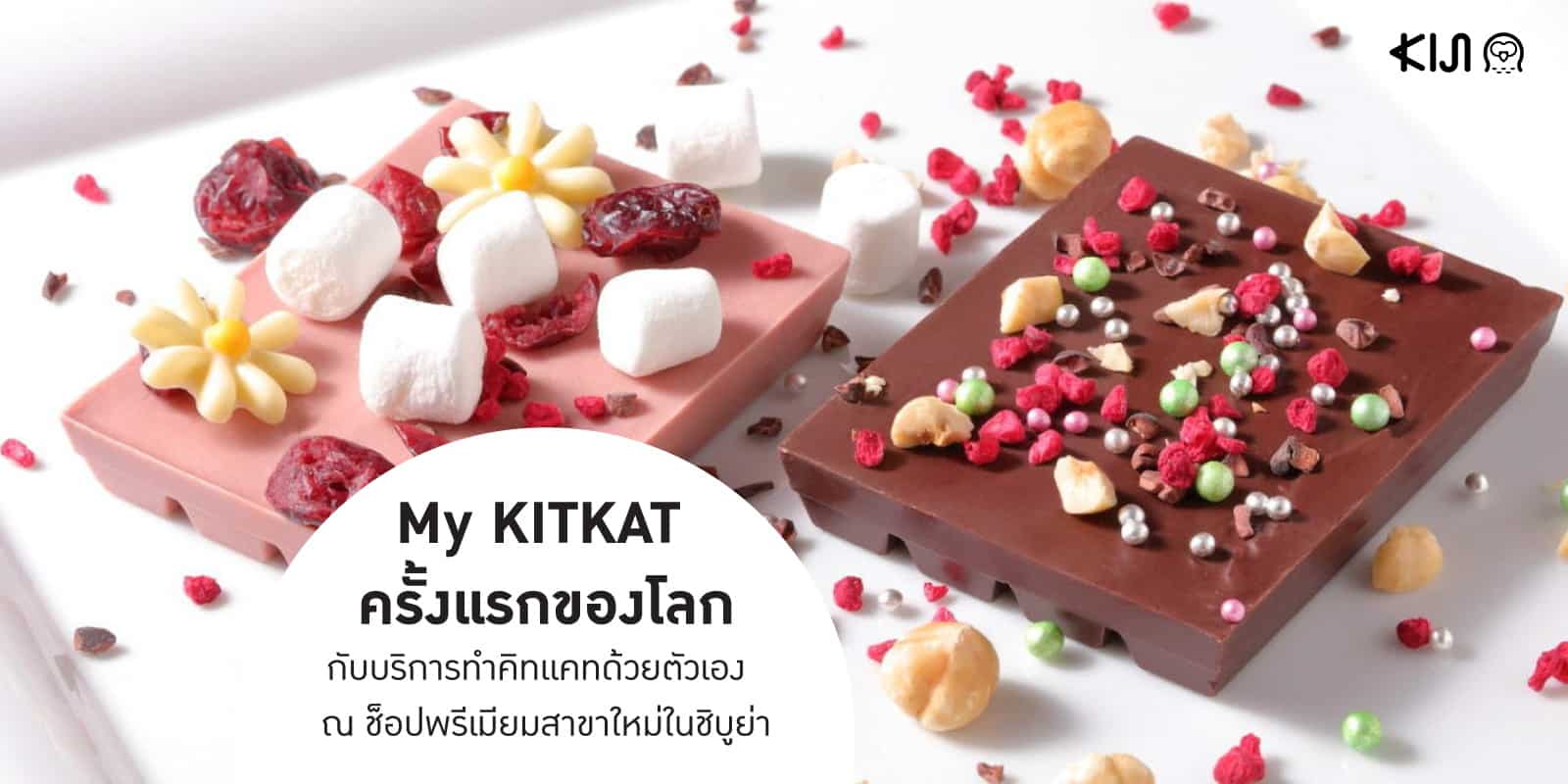 ขยายความเพิ่มเติมอีกหน่อยสำหรับ My KITKAT บริการสุดพิเศษสำหรับแฟนคลับคิทแคท เพื่อนๆ สามารถลงมือทำคิทแคทด้วยตัวเองตั้งแต่ขั้นตอนเทช็อกโกแลตลงบนแม่พิมพ์จนถึงการตกแต่งหน้าช็อกโกแลตตามใจชอบ ซึ่งมีช็อกโกแลตให้เลือก 3 รสชาติ ได้แก่ ดาร์คช็อกโกแลต ไวท์ช็อกโกเเลต และมิลค์ช็อกโกแลต ส่วนท็อปปิ้งก็มีให้เลือกมากถึง 17 อย่าง อาทิ อัลมอนด์ ลูกเกด มาร์ชเมลโลว์ เพรทเซล ดอกไม้กินได้ ฯลฯ