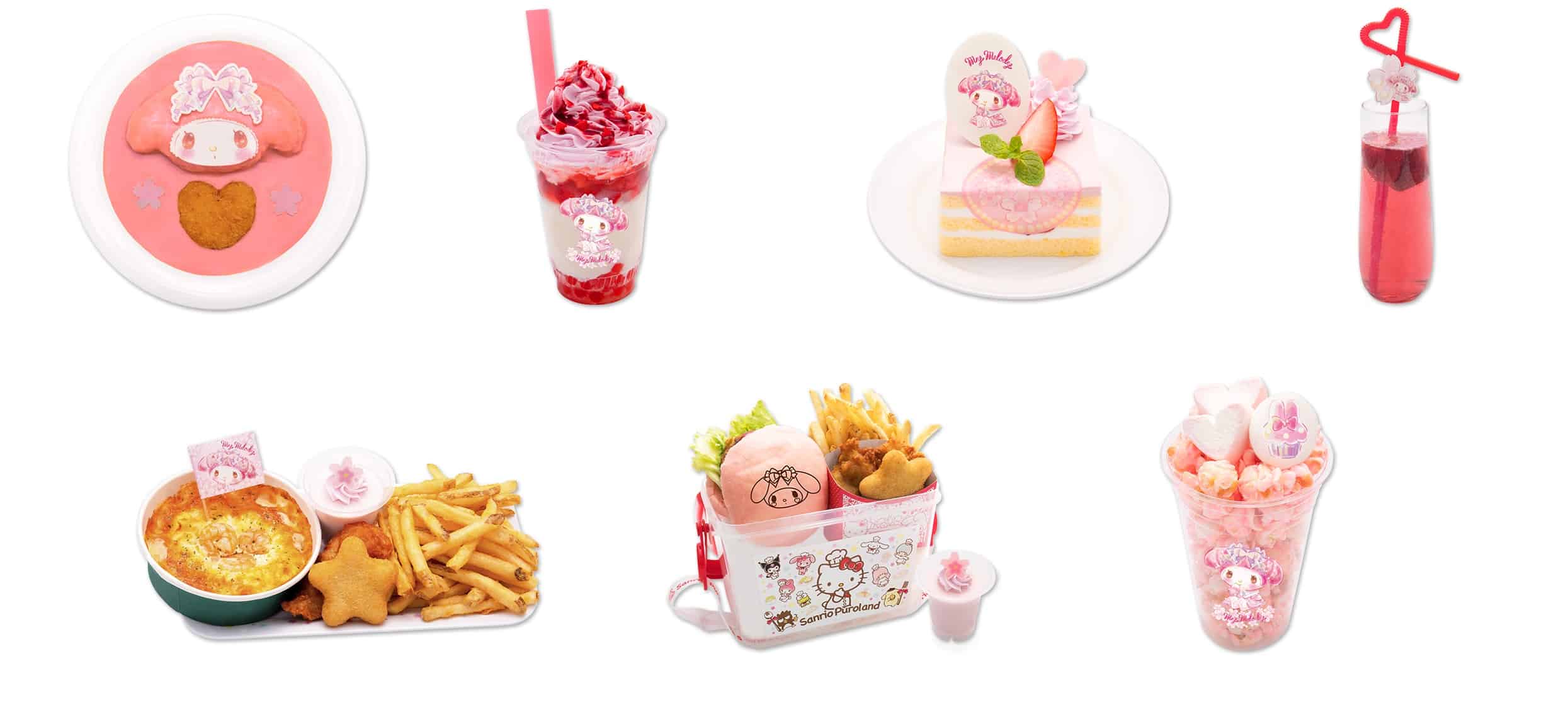 สำหรับเมนูอาหารและขนมในธีมของ Pink & Sakura ที่มีเมนูให้เลือกมากมาย เช่น My Melody Lovely and Pink Curry แกงกะหรี่และกุ้งทอดรูปหัวใจ, My Melody เบอร์เกอร์ และเค้กฉลองครบรอบ My Melody และเมนูอื่นๆ อีกมากมายซึ่งล้วนแต่ตกแต่งเป็นพิเศษเพื่อฉลองครบรอบ 45 ปี นอกจากน่ารักแล้วยังอร่อยเต็มไปด้วยเสน่ห์ของ My Melody