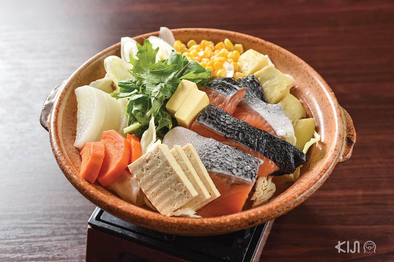 ไหนๆ ก็เดินทางมาจากฮอกไกโด คงต้องแนะนำเมนูประจำถิ่นของเขา อิชิคารินาเบะหรือนาเบะแซลมอน ที่ใช้ชื่อนี้เพราะมาจากชื่อแม่น้ำอิชิคาริที่โด่งดังเรื่องการจับปลาแซลมอน โดยทางร้านยังคงความเป็นออริจินัลได้อย่างครบถ้วน ทั้งแซลมอนชิ้นใหญ่ ผักชนิดต่างๆ อย่างกะหล่ำปลี หัวไชเท้า เต้าหู้ แครอท ต้นหอมญี่ปุ่น ผักมิซูน่า ที่ขาดไม่ได้คือข้าวโพด มันฝรั่ง และเนย จึงทำให้น้ำซุปมีความหวานหอมเข้มข้นและมีเอกลักษณ์ชัดเจนในแบบฮอกไกโด