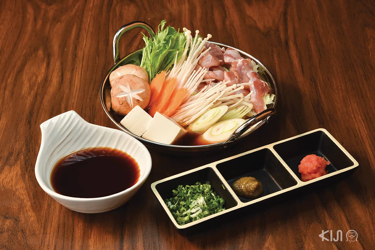 ด้วยความเป็นอิซากายะมืออาชีพ แน่นอนว่าเมนูนาเบะของที่นี่จึงหลากหลายมาก เราแนะนำเป็นหม้อไฟไก่บ้าน ที่ใช้เนื้อไก่บ้านสายพันธุ์พิเศษ “Shamo” ไก่ชนเลือดนักสู้สายพันธุ์ญี่ปุ่น เนื้อนุ่มแต่ไขมันน้อย เสิร์ฟคู่กับซอสพอนสึที่ปรุงรสด้วยต้นหอมสับ หัวไชเท้า และยูซุโคโช พร้อมด้วยผักต่างๆ ที่มากันครบทั้งผักกาดขาว ต้นหอมญี่ปุ่น เห็ดเข็มทอง เห็ดชิตาเกะ และผักมิซูนา
