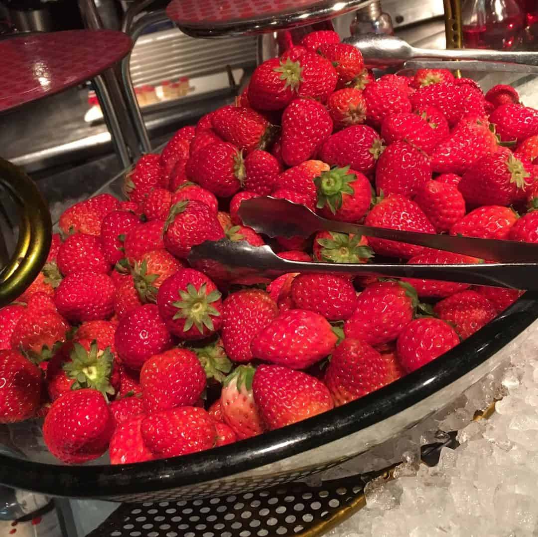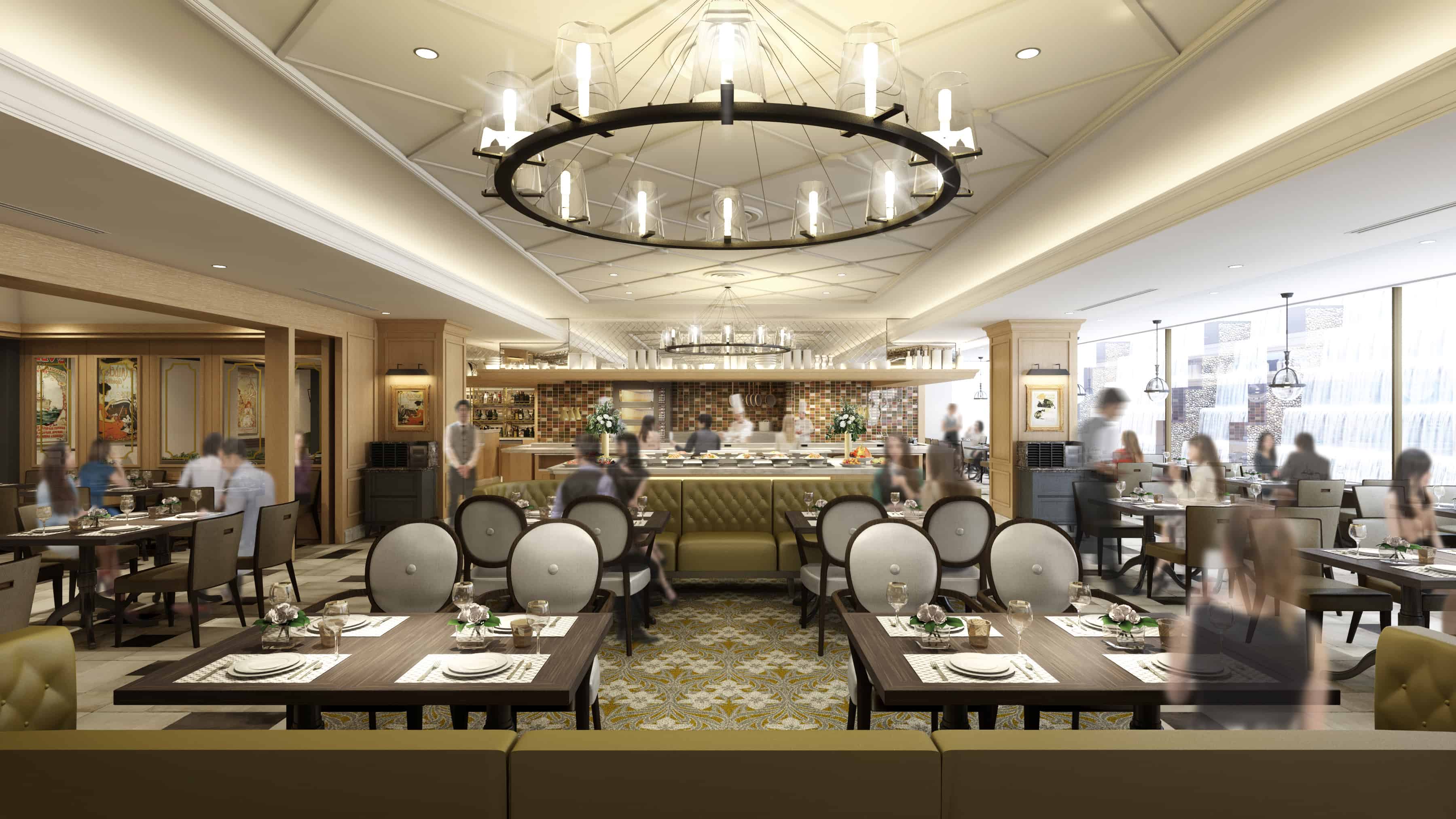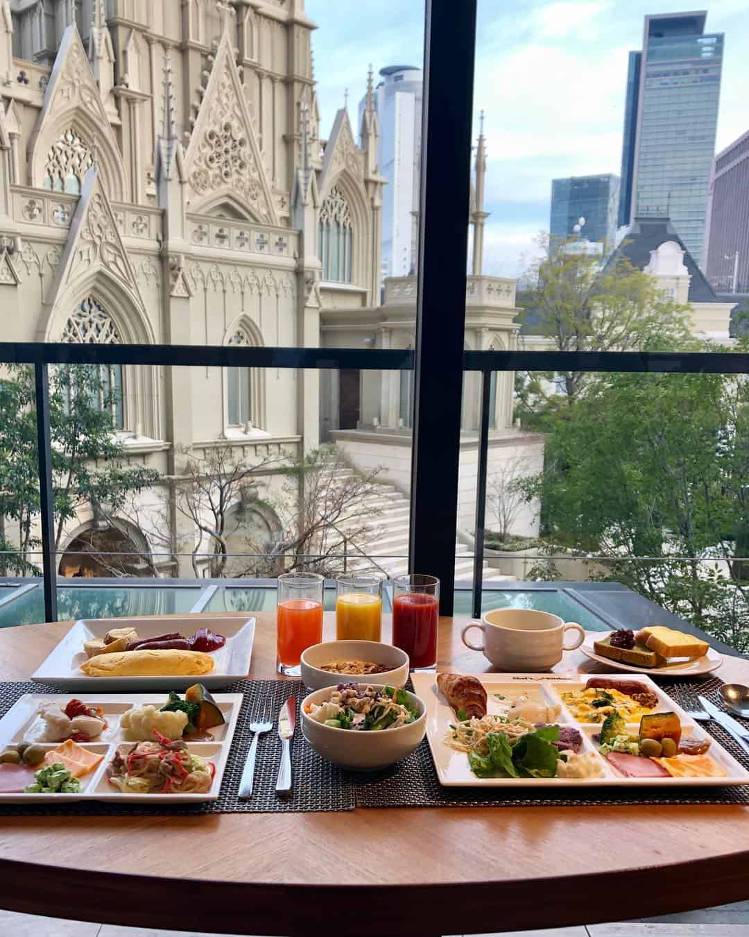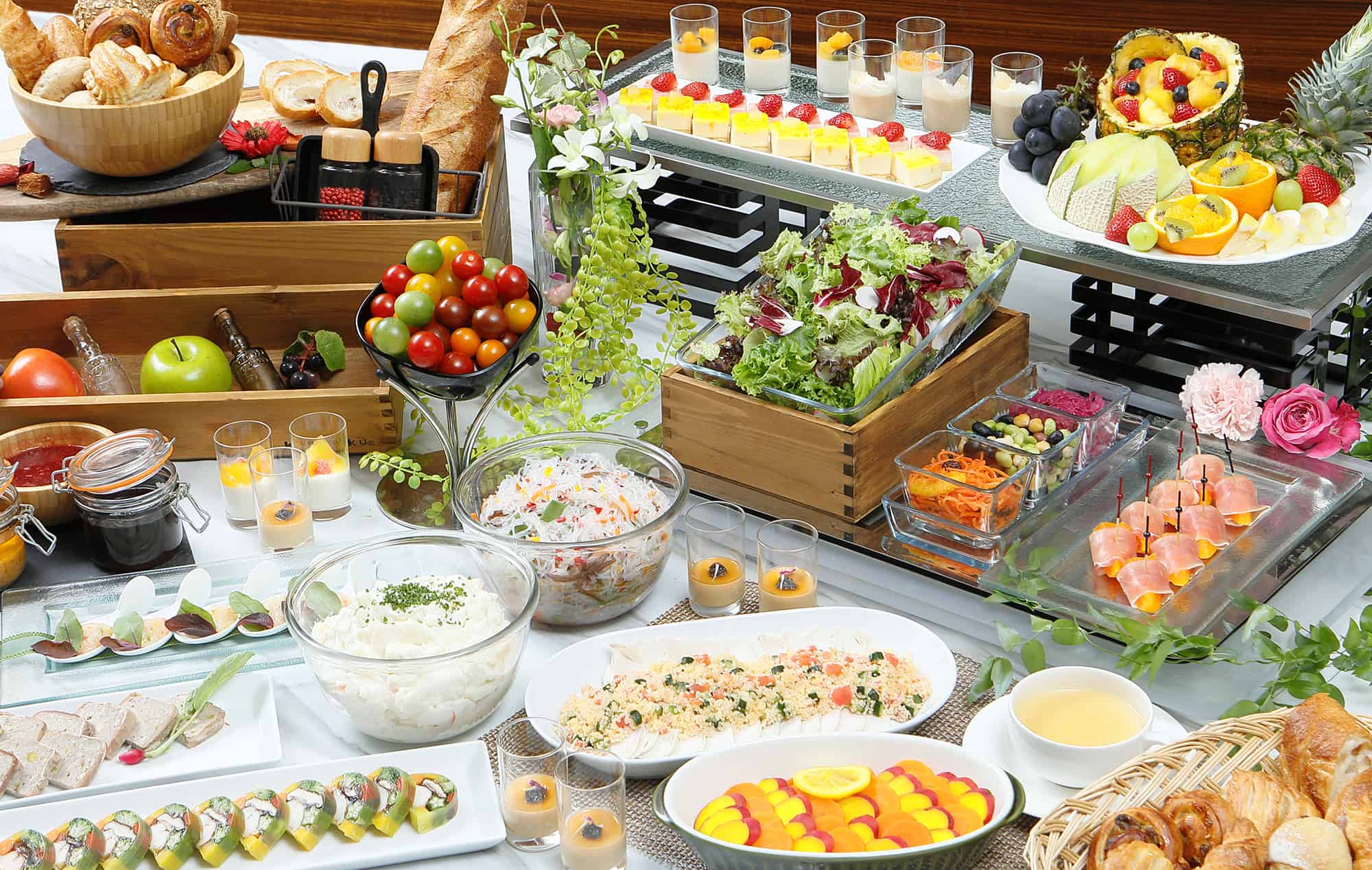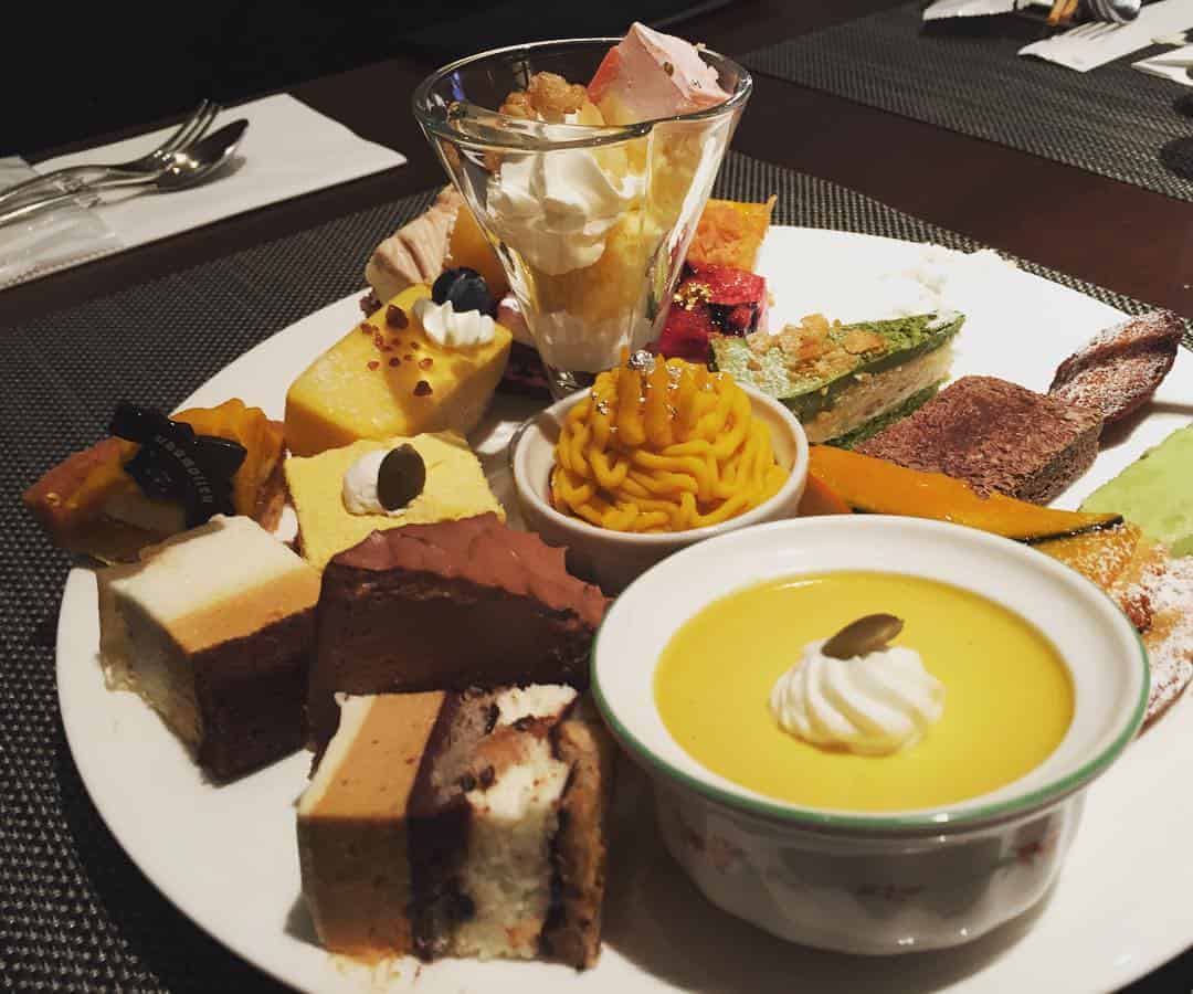 เมนูบุฟเฟ่ต์ของที่นี่ก็ยังคงเสน่ห์ความเป็นอาหารฝรั่งเศสไว้อย่างเต็มเปี่ยม แบ่งออกเป็น 4 รอบ โดยเป็นบุฟเฟต์เต็มรูปแบบในช่วงเช้าที่ใช้ชื่อว่า Original Morning Buffet (6:30-10:00 น) รวมอาหารเช้าสไตล์ฝรั่งเศส คนละ 2,945 เยน และช่วงบ่ายแก่ๆ ที่ใช้ชื่อว่า Sweet & Delica Buffet (15:00-17:00 น.) เต็มไปด้วยสลัดและของหวานสุดฟินที่ผสานความเป็นญี่ปุ่นเข้ากับฝรั่งเศสอย่างลงตัว ราคาคนละ 2,700 เยน ส่วนมื้อกลางวันและมื้อค่ำจะเป็นเมนูแบบอะลาคาร์ทที่เชฟโชว์ปรุงให้ดูกันสดๆ แต่ก็ยังสามารถตักสลัดและของหวานได้ไม่อั้น ราคาคนละ 2,900-6,000 เยน โดยขึ้นอยู่กับเมนูที่สั่ง