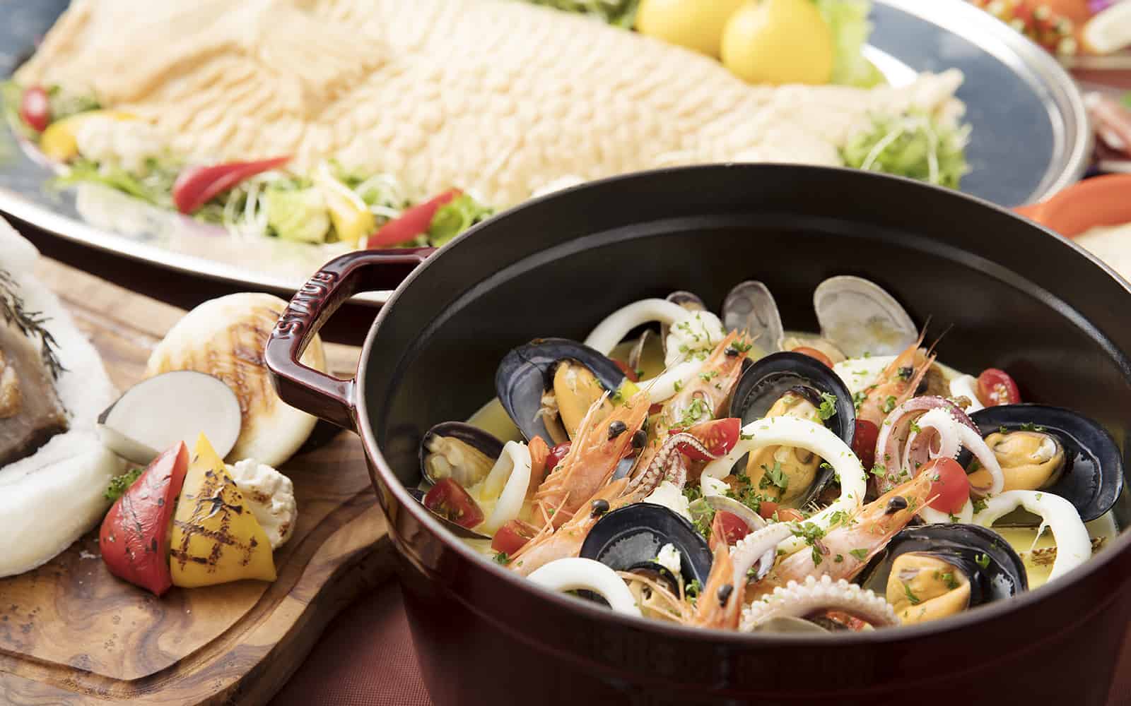 บุฟเฟ่ต์ขาปูของที่นี่จะจัดบางเดือนเท่านั้น และมีการผลัดเปลี่ยนชนิดของปู รวมถึงเมนูเสริมทัพอื่นๆ ด้วยเช่นกัน ราคาต่อคนจะอยู่ที่ราวๆ 3,900-4,100 เยน แต่แม้จะไปในช่วงที่ไม่มีบุฟเฟ่ต์ปูก็ไม่ต้องเสียใจไป เพราะอาหารและของหวานสไตล์อิตาเลียนในบุฟเฟ่ต์ปกติก็อลังไม่แพ้กัน มื้อกลางวันคนละ 3,700 เยน มื้อเย็นคนละ 4,500 เยน สามารถกินได้ 1 ชั่วโมงครึ่ง ที่สำคัญเมนูก็จะเปลี่ยนไปเรื่อยๆ เรียกว่ากลับมากินกี่ครั้งก็ไม่ซ้ำ