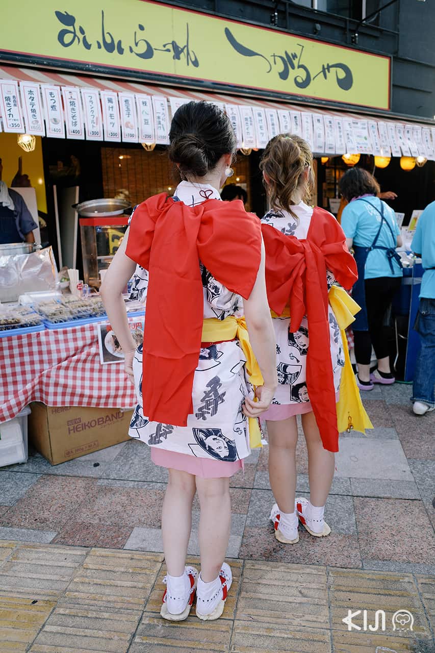 งงว่าจะต้องขึ้นคันไหนและต้องลงป้ายไหน ฉันมองสำรวจดูว่ามีใครที่น่าจะไปงานเทศกาลนี้บ้าง ก็หันไปเจอครอบครัวหนึ่งที่คิดว่าต้องไปงานเดียวกันเพราะน้องเด็กจิ๋วทั้งสองแต่งยูกาตะพร็อพจัดเต็ม เลยตัดสินใจตามน้องเขาไปนี่แหละ แม้ว่าเขาจะไม่รู้ตัวก็ตาม และแล้วเราก็มาถึงบริเวณที่จัดงานจนได้ เลยได้แต่อาริกาโตโกไซมัสในใจและลงรถบัสตามน้องไป