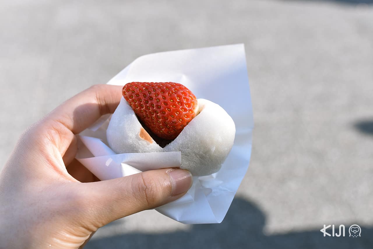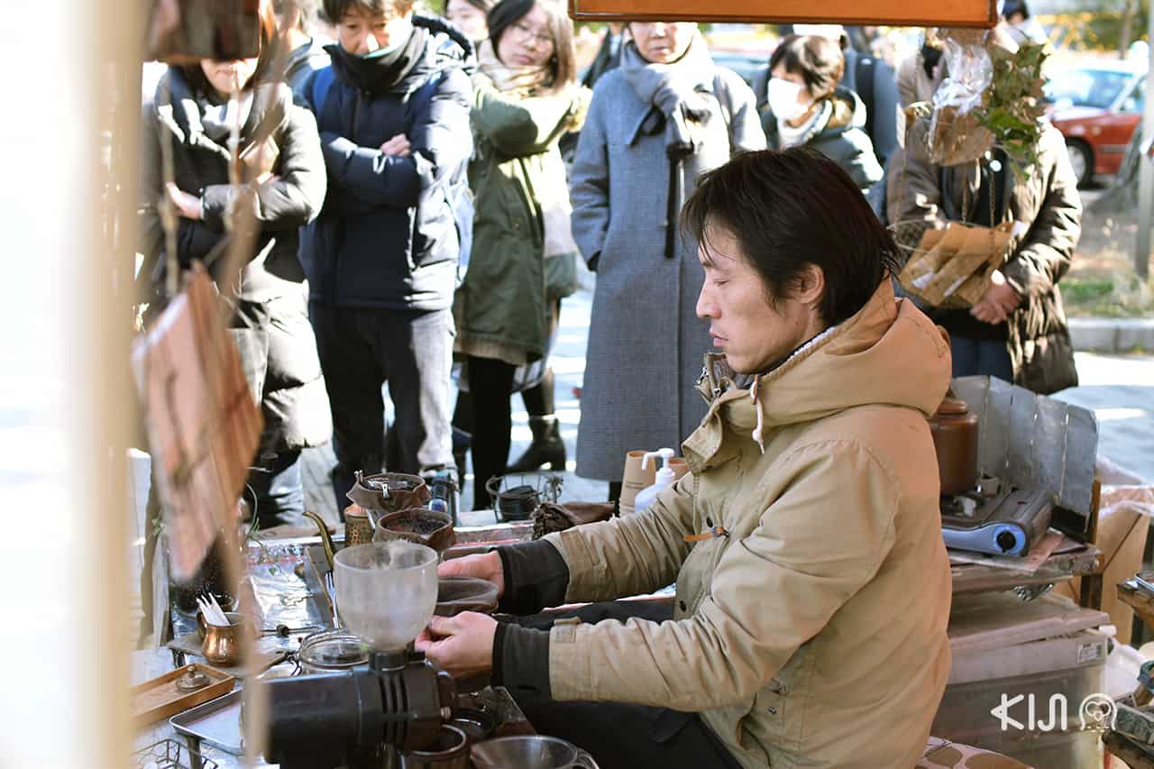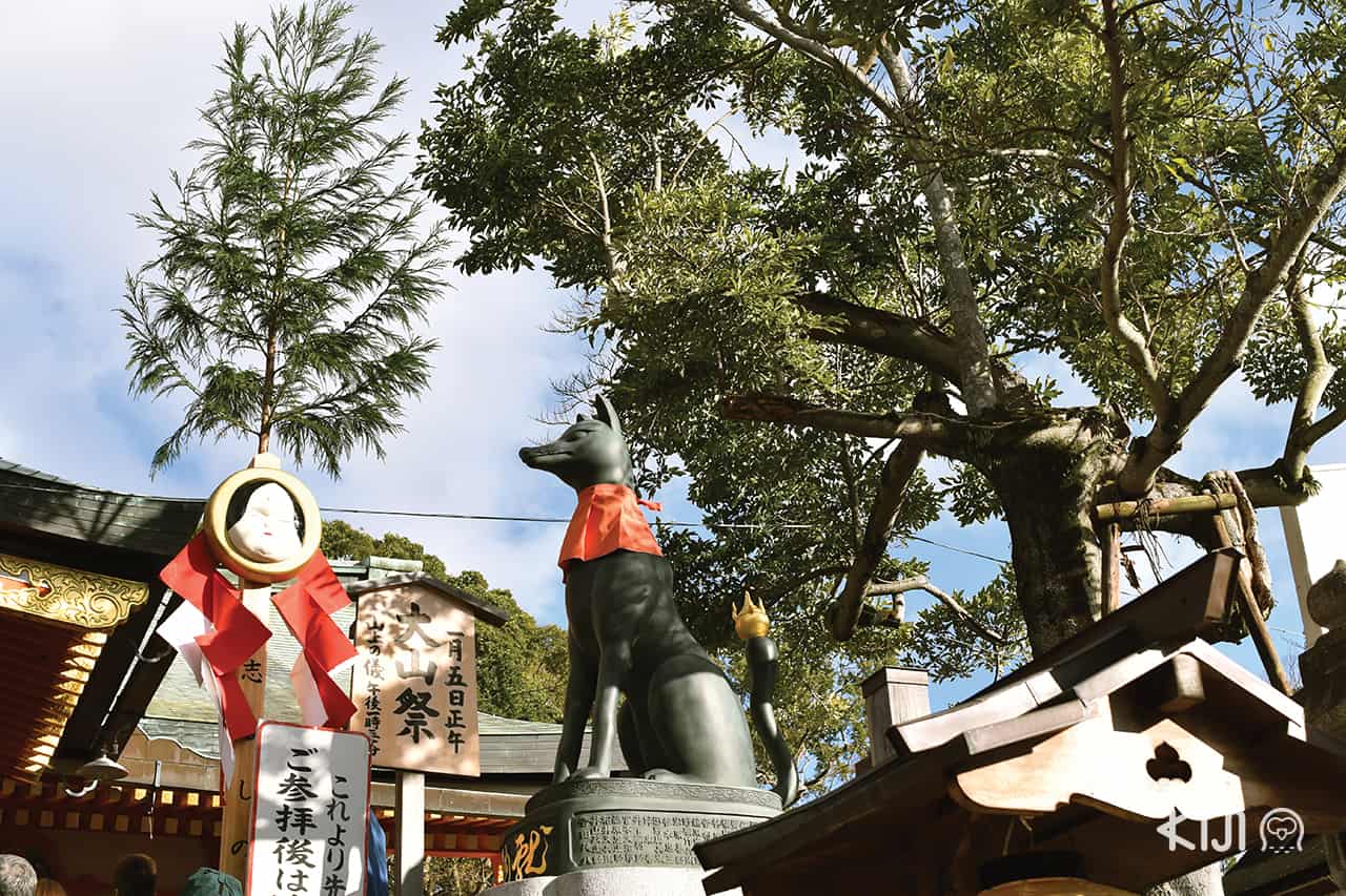 โดยปกติในวันปีใหม่พ่อค้าแม่ค้าญี่ปุ่นพากันมาตั้งยะไตเปิดขายอาหารกันตรงถนนทางเข้าวัดหรือศาลเจ้า แต่ที่เราสังเกตได้คือที่ศาลเจ้าแห่งนี้มียะไตเยอะกว่าที่อื่น จะเดินไม่ถึงตัวศาลเจ้าสักทีก็เพราะต้องแวะชิมอาหารคาวหวานที่ยะไตตามรายทางก่อนนี่แหละ เพลินที่สุด