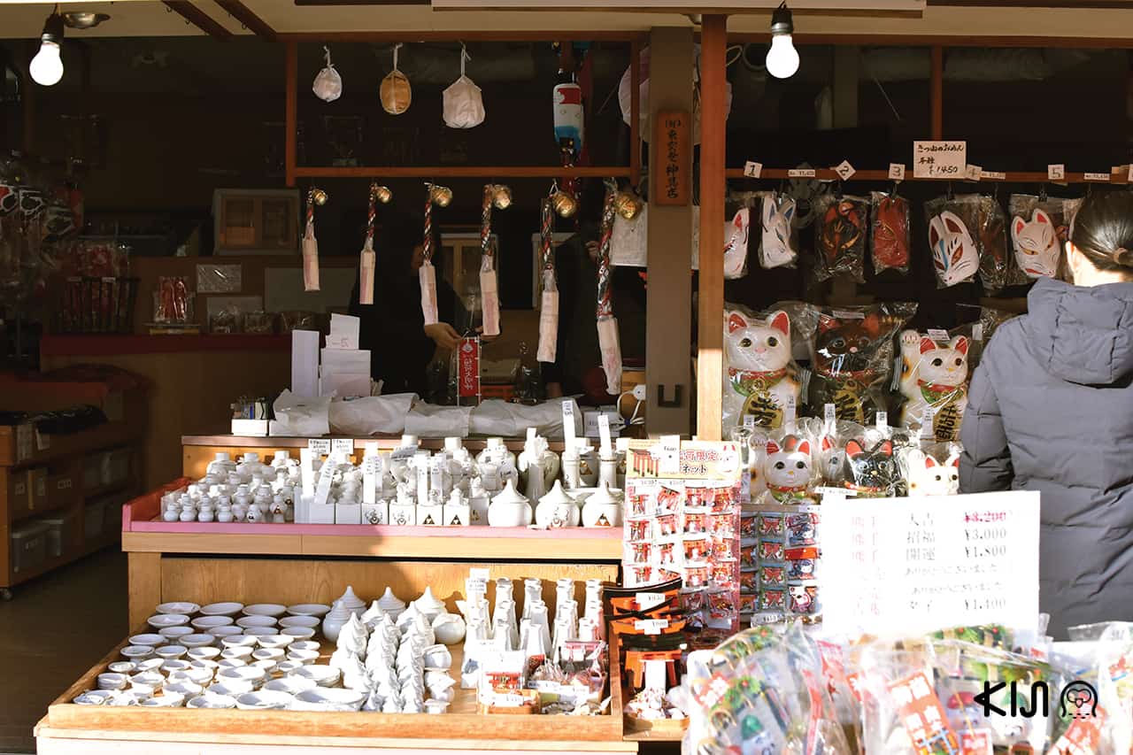 ขอเริ่มต้นด้วยศาลเจ้าฟูชิมิอินาริ เพราะเราได้ยินมาว่าช่วงปีใหม่ที่นี่จะมีผู้คนหลั่งไหลมาร่วมฮัทสึโมเดะราวๆ 3 ล้านคน มันจะสักแค่ไหนกันเชียว เดินออกจากสถานีรถไฟก็ขออนุญาตอึ้งไปพัก อยากให้ทุกคนลองจินตนาการตามเราว่าสถานที่ที่ทุกพื้นที่แน่นขนัดไปด้วยผู้คนในท้องถิ่นและชาวต่างชาติ จนต้องมีเจ้าหน้าที่คอยตะโกนบอกทางเข้าออกบ้าง ยืนถือป้ายบอกทางเดินบ้าง เพราะคนเยอะสมคำร่ำลือจริงๆ