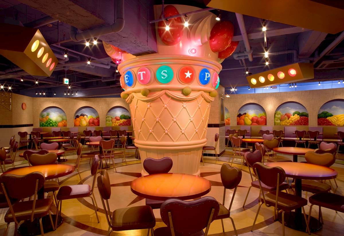 สำหรับใครที่ยังไม่รู้จัก Sweets Paradise ก็ต้องบอกว่าเป็นร้านบุฟเฟ่ต์ของหวานที่มีอยู่หลายสาขาทั่วญี่ปุ่น (และมีเมนูของคาวเล็กน้อย) แต่ละสาขาก็จะมีการตกแต่งภายในที่แตกต่างกันไป ซึ่งครั้งนี้เราขอแนะนำสาขาอิเคะบุคุโระ (Ikebukuro) ในกรุงโตเกียว ตัวร้านมีจุดเด่นคือไอศกรีมโคนขนาดใหญ่และสีสันร้านที่ดูน่ารัก โดยระหว่างช่วงอีเว้นท์ ภายในร้านจะมีการตกแต่งเพิ่มเติม ซึ่งจะเต็มไปด้วยภาพของ กองพลบุสะเนโกะ พาราเนียงส์ กลุ่มน้องแมวที่วาดโดย Busanekokan จะมาแอบซ่อนอยู่ตามมุมต่างๆ ด้านใน คอยแนะนำเมนูขนมหวานแต่ละเมนูให้เราได้รู้จักกัน