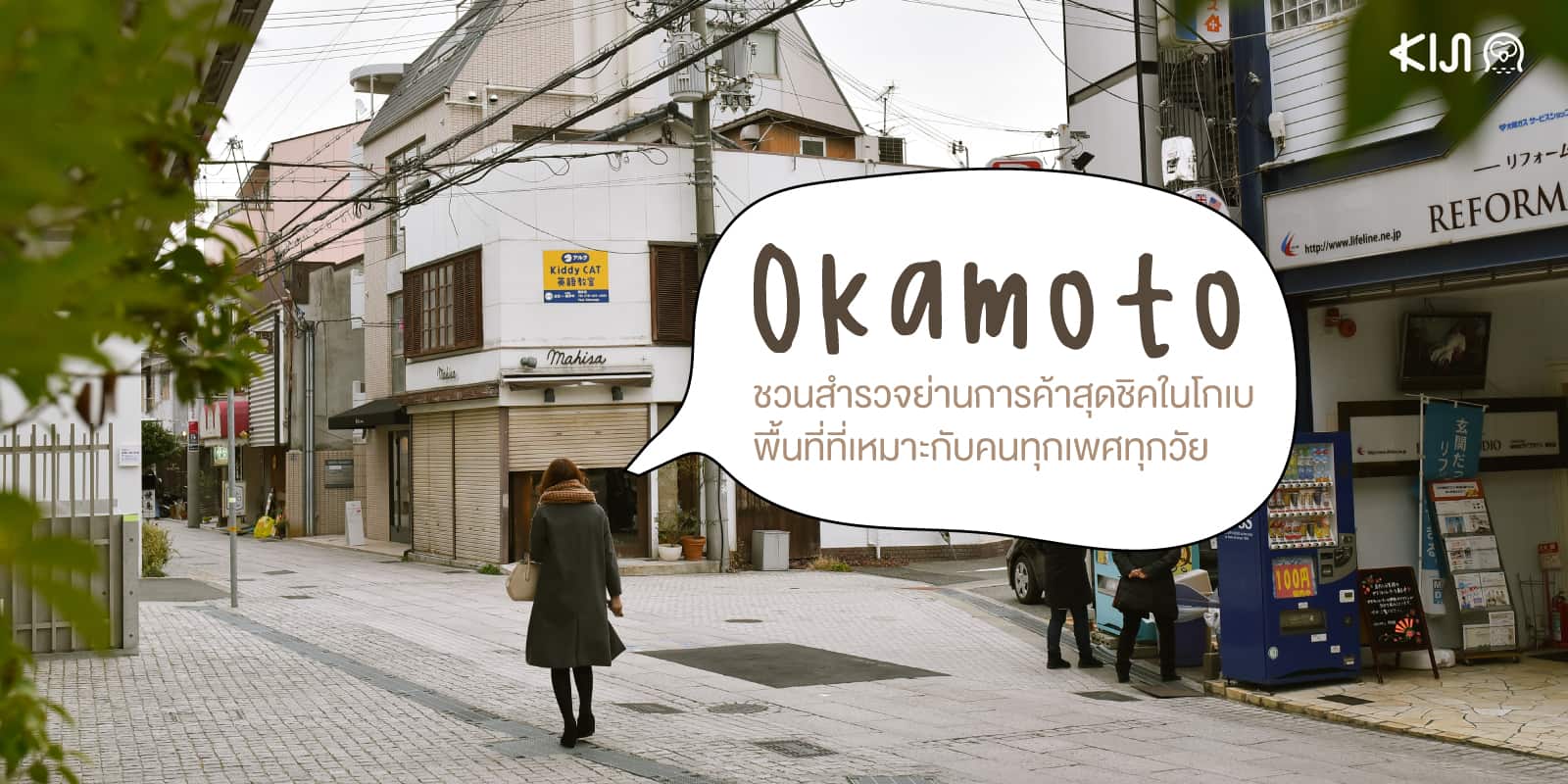 โอคาโมโตะ (Okamoto) ชื่อย่านการค้าที่เต็มไปด้วยร้านค้าที่มีเอกลักษณ์ ตั้งอยู่กึ่งกลางระหว่างสถานีรถไฟ JR Settsu Motoyama กับสถานี Hankyu Okamoto ในเมืองโกเบ (Kobe)