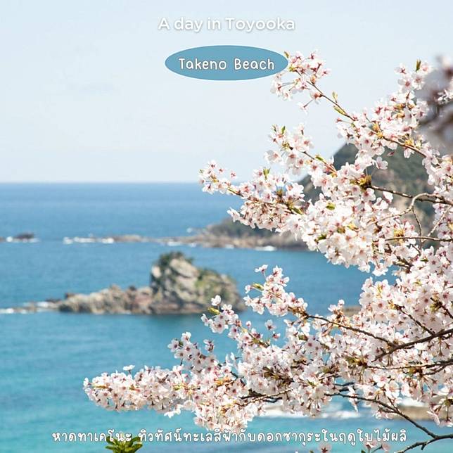 สถานที่ต่อไปที่เราจะไปนั้นเอาใจคนชอบทะเลกันหน่อย นั่งรถไฟจากสถานีโคะคุฟุ (Kokufu Station) ใช้เวลาเดินทางประมาณ 30 นาที มาลงที่สถานีทาเคโนะ (Takeno Station) เดินต่อ 20 นาทีก็จะถึงหาดทาเคโนะ (Takeno Beach) ซึ่งหาดทาเคโนะนั้นอยู่ทางเหนือสุดของจังหวัดเฮียวโงะ และชายหาดของที่นี่ก็ติดหนึ่งในชายหาดที่ดีที่สุด 100 แห่งในญี่ปุ่น แต่ในช่วงต้นถึงกลางเมษายนที่ซากุระเบ่งบานนั้นน้ำเย็นจนไม่สามารถเล่นได้ ทำให้จุดที่น่าสนใจคือซากุระนั่นเอง แถมที่ใกล้ๆ กับหาดทาเคโนะนั้นพอเดินขึ้นเขาไปอีกหน่อยก็จะเจออุทยานภูเขาจาจา (Jajayama Park) ซึ่งเป็นอีกหนึ่งจุดที่สามารถมาชมดอกซากุระได้จากบนภูเขา สามารถแวะถ่ายรูปเช็คอินลงโซเชียลกันได้อีกด้วยนะ