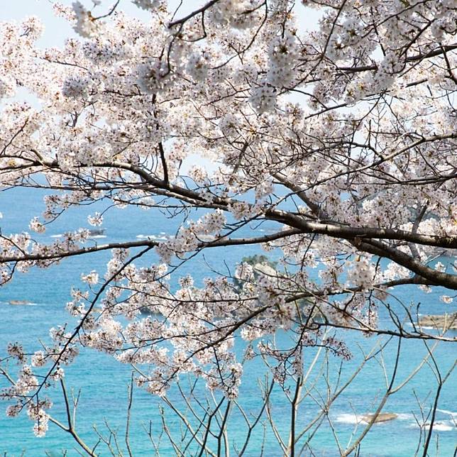 ทิวทัศน์ทะเลสีฟ้ากับดอกซากุระในฤดูใบไม้ผลิที่หาดทาเคโนะ | Takeno Beach 🌊
