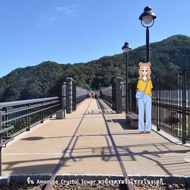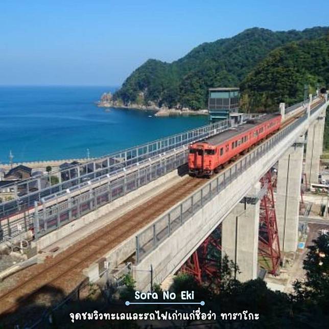 ต่อมาเราจะพาทุกคนนั่งรถไฟพาชมวิวทะเลที่สถานีอามารุเบะ (Amarube Station) กัน! โดยจะต้องเดินย้อนมาขึ้นที่สถานีทาเคโนะ (Takeno Station) รถไฟที่จะนั่งไปนั้นเป็นรถไฟเก่าแก่ของเมือง โทโยโอกะ (Toyooka) ชื่อว่า รถไฟทาราโกะ (Tarako Train ) เนื่องจากรถไฟมีสีเหมือนสีของทาราโกะ และสีนี้ยังบ่งบอกถึงความเก่าแก่ของรถไฟญี่ปุ่นอีกด้วย ระหว่างทางเราจะได้เพลิดเพลินกับการชมดอก ซากุระ ตามข้างทาง ใช้เวลานั่งรถไฟประมาณ 34 นาทีก็จะถึงสถานีอามารุเบะ จากนั้นเดินต่ออีกนิดหน่อยก็จะถึงจุดที่ชมวิวสกายวอร์ค โซระโนะเอกิ (Sora No Eki) ตรงนี้สามารถมองเห็นวิวทะเลและรถไฟที่วิ่งผ่านบริเวณนี้ได้ และจุดชมวิวแห่งนี้ยังมี Amarube Crystal Tower เป็นลิฟต์กระจกสำหรับขึ้นไปชมวิวทะเลและรถไฟทาราโกะได้ และอีกหนึ่งความพิเศษของที่นี่คือกลางคืนจะมีการเปิดไฟ เราจะได้เห็นแสงสีของไฟที่ถูกเปลี่ยนไปตามสีของฤดูกาลนั่นเอง