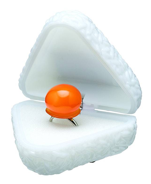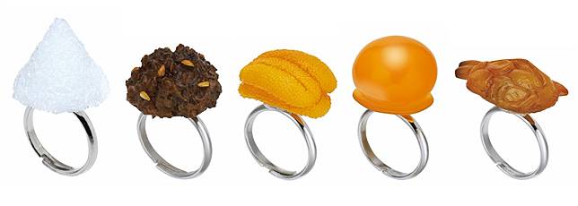 หัวแหวนนั้นมีถึง 5 แบบด้วยกัน ได้แก่ กองเกลือ คัตสึโอะบุชิ (ปลาแห้งญี่ปุ่น) อุนิ ไข่แดงดองโชยุ และหอยอาซาริหรือหอยลาย แถมยังไม่ต้องกังวลเรื่องจะใส่แหวนไม่ได้ หรือใส่แล้วถอดไม่ออก เพราะแหวนเป็นแบบฟรีไซส์ที่ไม่ว่าใครก็สามารถใส่เล่นเก๋ๆ ได้ทั้งนั้น