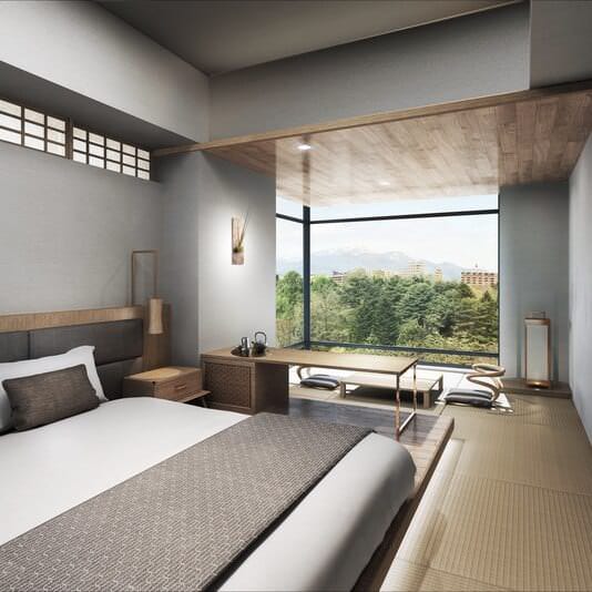 จำนวนห้องพักมีทั้งหมด 182 ห้อง ขนาดความกว้างของห้องมีตั้งแต่ 20 ถึง 40 ตารางเมตร มาพร้อมรูปแบบห้องพักให้เลือกมากถึง 10 แบบ อาทิ ห้องพักใต้หลังคา ห้องพักพร้อมอ่างอาบน้ำกลางแจ้ง เป็นต้น ด้วยความหลากหลายนี้จึงสามารถรองรับได้ทุกความต้องการของผู้มาเยือน