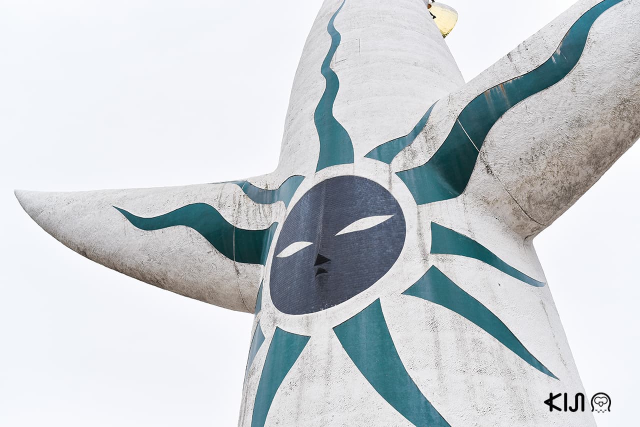 เมื่อก้าวเข้ามาสิ่งแรกที่จะเจอเลยก็คือ Tower of the Sun หรือหอคอยพระอาทิตย์ เป็นงานศิลปะชิ้นโตที่มีความสูงราว 70 เมตร ออกแบบโดยศิลปินชาวญี่ปุ่นคุณโอคาโมโตะ ทาโร่ (Taro Okamoto) เอาเป็นว่าตอนผมยืนมองจากที่สถานีรถไฟว่าใหญ่แล้ว พอมายืนดูใกล้ๆ เจ้าหอคอยนี้กลับมีขนาดมหึมากว่าที่ผมจินตนาการไว้ซะอีก และในส่วนของเจ้าหอคอยพระอาทิตย์นี้ด้านล่างมีมิวเซียม2ให้ชมด้วย เเต่อย่าลืมจองตั๋วที่จะเข้าชมล่วงหน้าที่เว็บออฟฟิเชียลนะครับ เพราะหน้างานไม่มีขายบัตรเข้าชม ระวังจะพลาดแบบผม