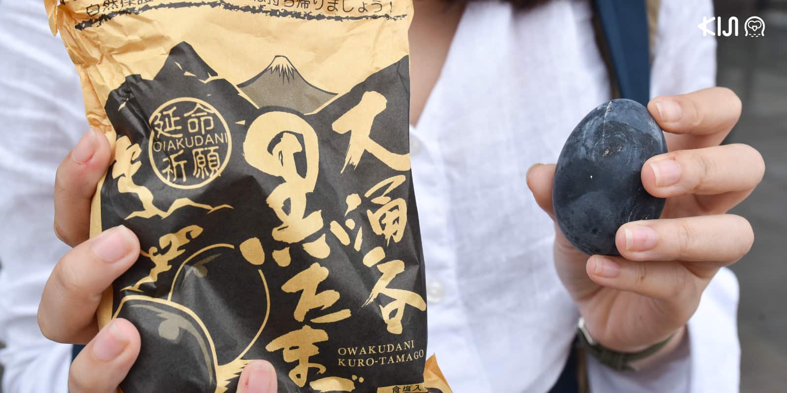 จุดหมายของเราคือการมากินของขึ้นชื่อประจำหุบเขานี้คือ “ไข่ดำ (Kuro Tamago)” ซึ่งต้มด้วยน้ำแร่กำมะถันที่ผุดขึ้นมา และสีดำของเปลือกไข่มาจากสีของกำมะถันนั่นเอง คนญี่ปุ่นมีความเชื่อว่าการได้กินไข่ดำ 1 ฟองจะทำให้อายุยืนขึ้นอีก 7 ปี เรากินไปตั้ง 3 ฟอง คงมีเวลามาเที่ยวญี่ปุ่นอีกนานเลย