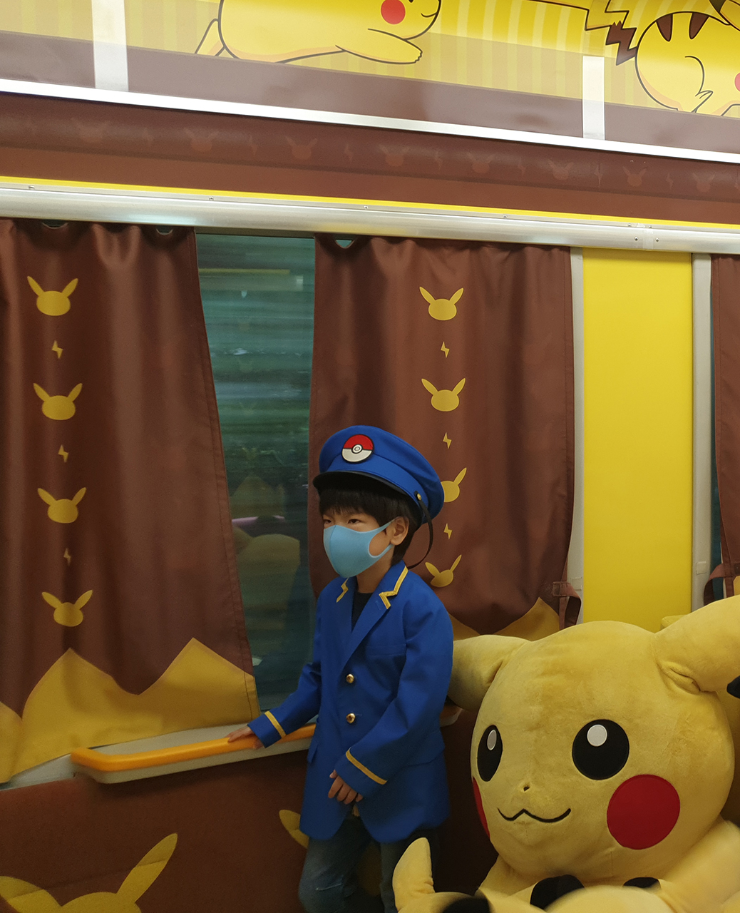 เดินเข้าปุ๊บจะพบกับมุมอุปกรณ์คอสเพลย์เป็นปิกาจูที่มีครบทั้งที่คาดผม, หางสายฟ้า, ชุดเจ้าหน้าที่รถไฟ(ของเด็ก) และมีตั๋วรถไฟแบบขยายใหญ่เบิ้มลงวันที่ที่เราเดินทางให้ถ่ายรูปเป็นที่ระลึก เดินลึกเข้าไปอีกหน่อยจะเจอโซฟาเตี้ยๆ 2 ฝั่งที่ก็ไม่ได้ว่างให้เรานั่งหรอกนะ เพราะมีตุ๊กตาปิกาจูตัวนุ่มๆ วางเรียงอยู่เต็มไปหมดจนอยากจะโดดเข้าไปเล่นกับน้องๆ นอกจากตุ๊กตายังมีมุมทดลองเป็นคนขับรถไฟของเล่น และมุมลูกบอลให้เล่นแบบเสริมทักษะด้วย