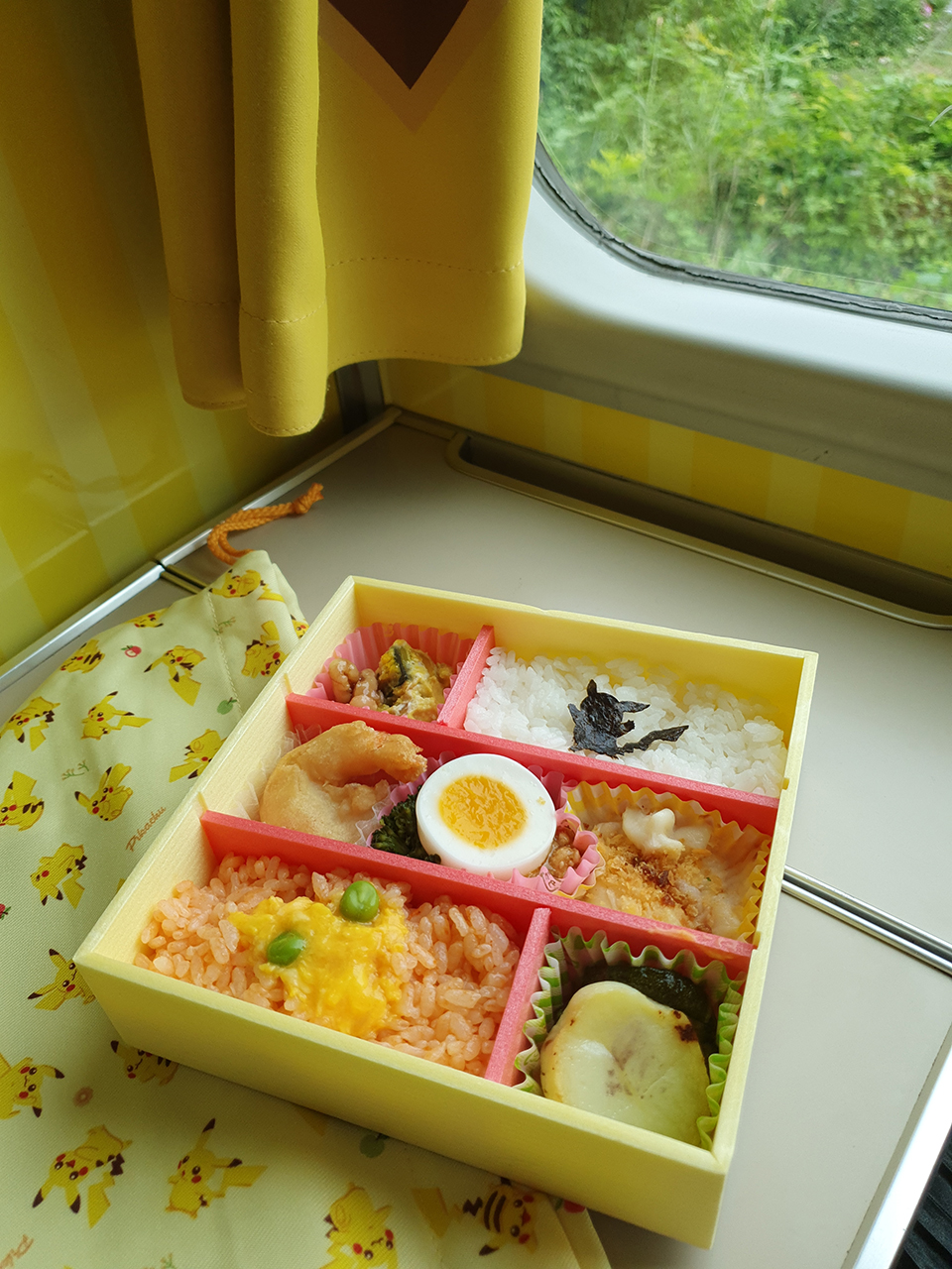 ถ้าต้องการประสบการณ์ทางรสชาติด้วยต้องซื้อเบนโตะมารับประทานทาน เบนโตะสีสันสดใสที่มีสาหร่ายรูปปิกาจูว่าน่ารักแล้ว แต่ถุงใส่เบนโตะน่ารักกว่า และแน่นอนว่าเรานำกลับบ้านได้(เย้!) แต่มีจำนวนจำกัดไม่ครบจำนวนผู้โดยสาร ต้องรีบซื้อหน่อยนะ