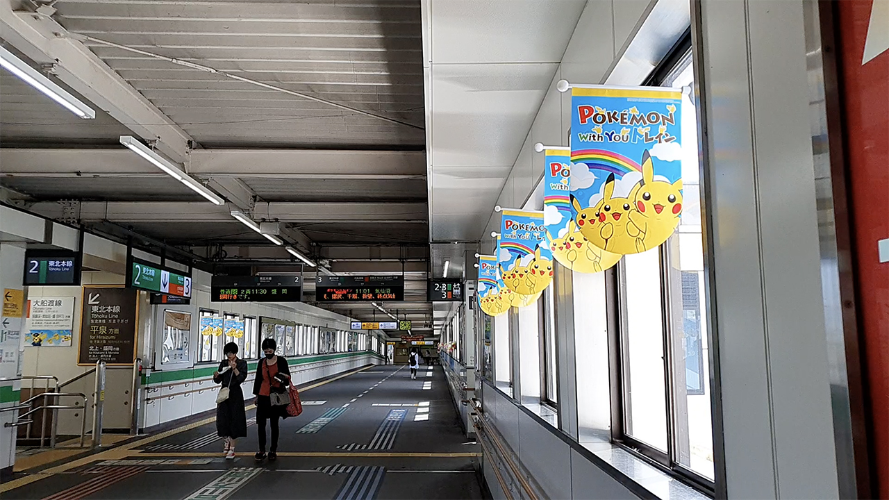 ตามจุดต่างๆ ของสถานีอิชิโนะเซกิ ทั้งฝั่งชินคันเซ็นและฝั่งรถไฟธรรมดาที่เพิ่งตกแต่งใหม่ไปเมื่อปีที่แล้ว มีโปเกมอนกระจายตัวส่งความน่ารักให้เห็นเป็นระยะทั้งในรูปแบบโปสเตอร์ ธง ภาพบนผนัง-กระจก ตุ๊กตาสำหรับถ่ายรูป ฯลฯ จนตามรัวเก็บรูปน้องๆ แทบไม่หวาดไม่ไหว เมื่อสบายใจแล้วจึงเดินไปยังชานชาลาพร้อมออกเดินทาง