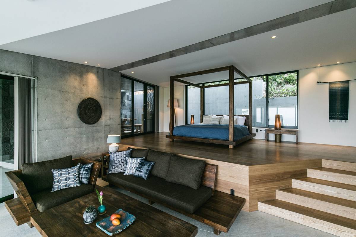 เดินเข้ามาในที่พัก จะเจอกับทางเดินที่ทอดยาว ทางขวามือจะเป็นส่วนของห้องนอน ส่วนทางซ้ายมือจะเป็นห้องน้ำ ห้องอาบน้ำ และห้องสไตล์ญี่ปุ่นที่ปูพื้นด้วยเสื่อทาทามิ เดินผ่านส่วนของห้องนอน จะเป็นสระว่ายน้ำที่อยู่ Outdoor ติดกับสระว่ายน้ำอีกด้านหนึ่งจะเป็นห้องนั่งเล่น Kitchen Island และระเบียงที่มองเห็นวิวทะเล เนื่องจากพื้นที่ทุกส่วนของที่พักเชื่อมกันเป็นแนวยาว ทำให้ไม่ว่าจะใช้เวลาอยู่บริเวณไหนของที่พัก ทุกๆ คนก็สามารถใช้เวลาร่วมกันในที่พักได้อย่างเต็มที่
