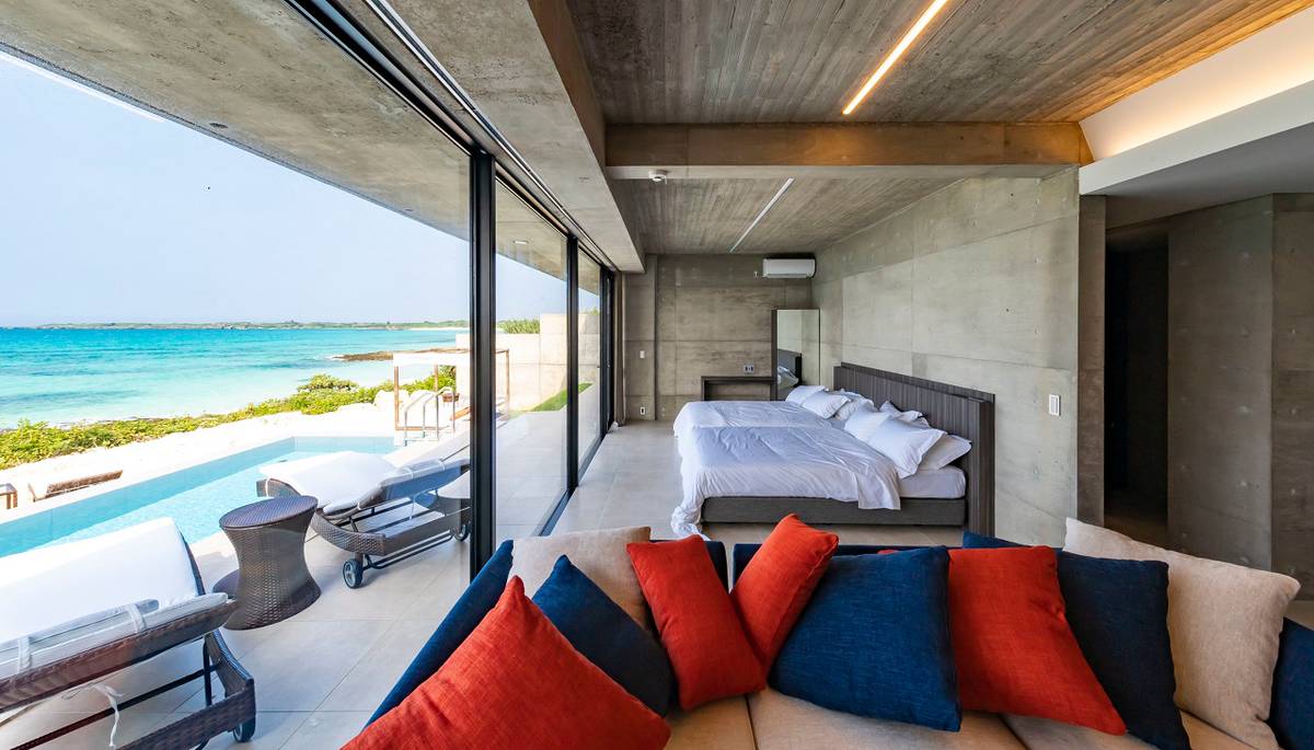 ห้องนอนห้องแรกนั้นอยู่ถัดเข้าไปจากโซนห้องนั่งเล่น ตกแต่งด้วยสไตล์ที่เรียบง่าย จากโซนนี้มองเห็นวิวสระว่ายน้ำและทะเลของเกาะโคอุริได้เช่น ห้องนอนห้องที่สองอยู่ถัดเข้าไปข้างใน ตกแต่งด้วยสไตล์มินิมอลคล้ายๆ กัน วิวของห้องนอนที่อยู่ข้างในนั้น จะเห็น บาลานซ์ ร็อค (Balance Rock) โขดหินขนาดใหญ่ที่อยู่บริเวณที่พักได้