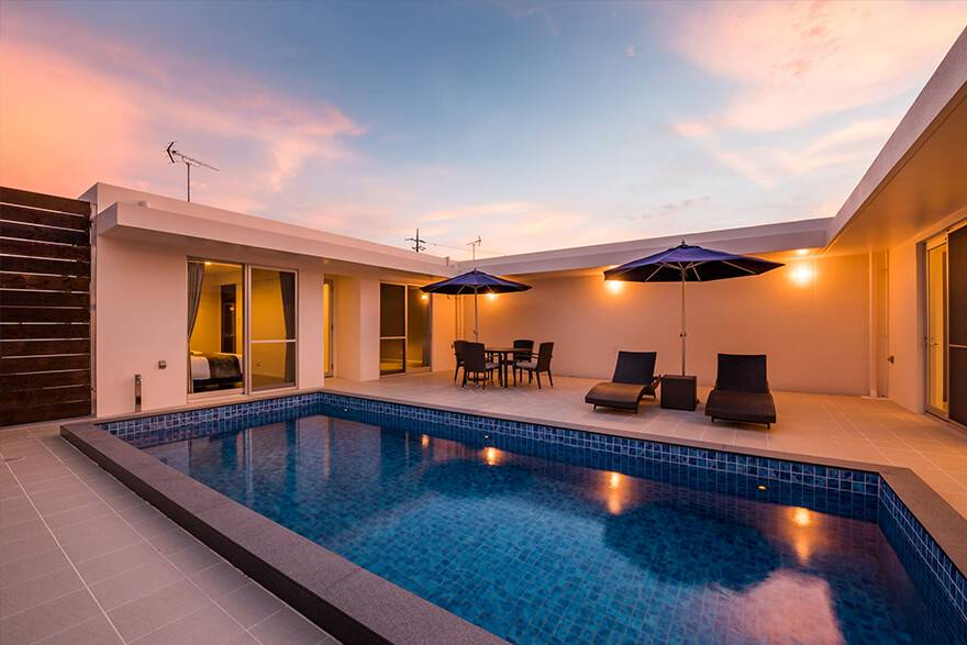 แต่เสน่ห์ของวิวล่าแห่งนี้ไม่ได้มีแค่ภายในห้อง แต่ส่วน Outdoor ก็มีเสน่ห์ไม่แพ้กัน ในวิลล่าทุกหลังจะมีสระว่ายน้ำส่วนตัว นอกจากนี้ยังมีอ่างจากุชชี่แบบกลางแจ้งให้ได้แช่กันด้วย หรือใครจะมานั่งรับลมพลางมองวิวทะเลที่สวนของทางวิลล่าก็ทำได้เช่นกัน เป็นอีกสถานที่พักที่สามารถใช้เวลาสุดแสนพิเศษไปอย่างคุ้มค่า