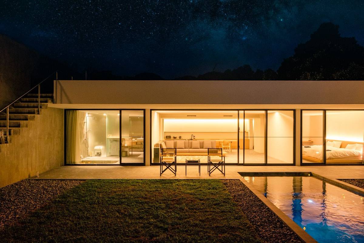 พื้นที่ Outdoor เชื่อมกับห้องหลักๆ ทั้งสามห้อง สามารถมานั่งดื่มด่ำกับบรรยากาศชิลล์ๆ ที่โต๊ะตรงระเบียงข้างนอกได้ หรือจะว่ายน้ำในสระก็เพลินดีเหมือนกัน ในตอนกลางคืนที่พักก็ถูกประดับไปด้วยแสงไฟสีอุ่น ได้บรรยากาศโรแมนติกสุดๆ แต่ถ้าอยากเพิ่มความโรแมนติกให้มากขึ้นล่ะก็ ที่วิลล่าแห่งนี้ยังมีดาดฟ้าให้ขึ้นไปดูดาวกันได้ด้วยนะ ใครที่ชอบสูดอากาศ รับลมเย็นๆ รับรองว่าที่นี่ต้องทำให้ใจฟูฟ่อง