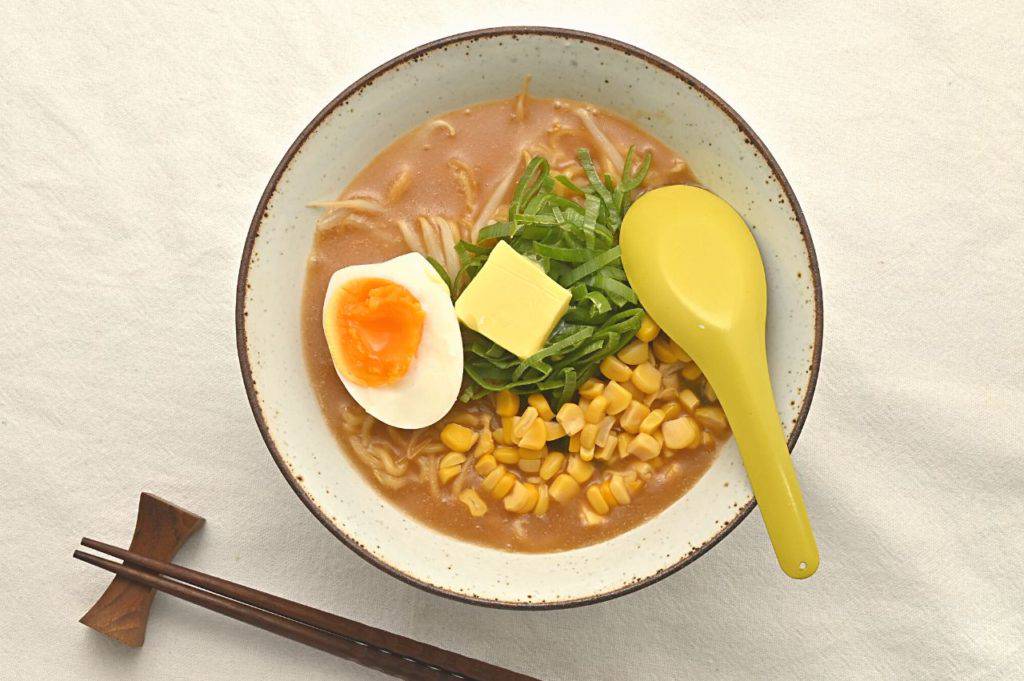 เมนูแรกเราที่อยากหยิบยกมาแนะนำก็คือราเมนซัปโปโร เพราะเป็นเมนูฮิตมาก ถือเป็น 1 ใน 3 ของราเมนยอดนิยม จุดเด่นคือเส้นราเมนที่เหนียวนุ่ม เราจึงได้เลือกเส้นราเมนสดพร้อมน้ำซุปรสมิโสะ จากแบรนด์ Momotaro ที่มาพร้อมกับเส้นและน้ำซุปมิโซะแบบเข้มข้น เติมข้าวโพดหวาน ถั่วงอก ต้นหอมญี่ปุ่น และไข่ต้ม ไฮไลท์คือใส่ก้อนเนยที่จะค่อยๆ ละลายลงในราเมงซุปมิโซะ ยิ่งทำให้น้ำซุปมิโซะเข้มข้นขึ้น
