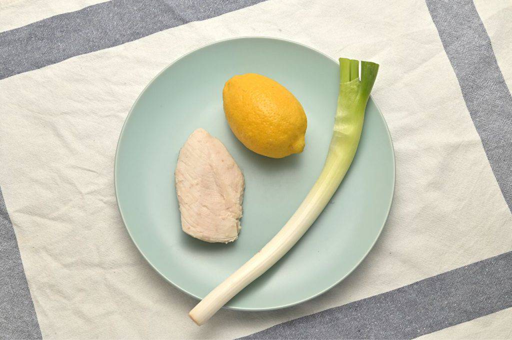 1. หั่นเลมอน เนื้อไก่ ต้นหอม เตรียมไว้